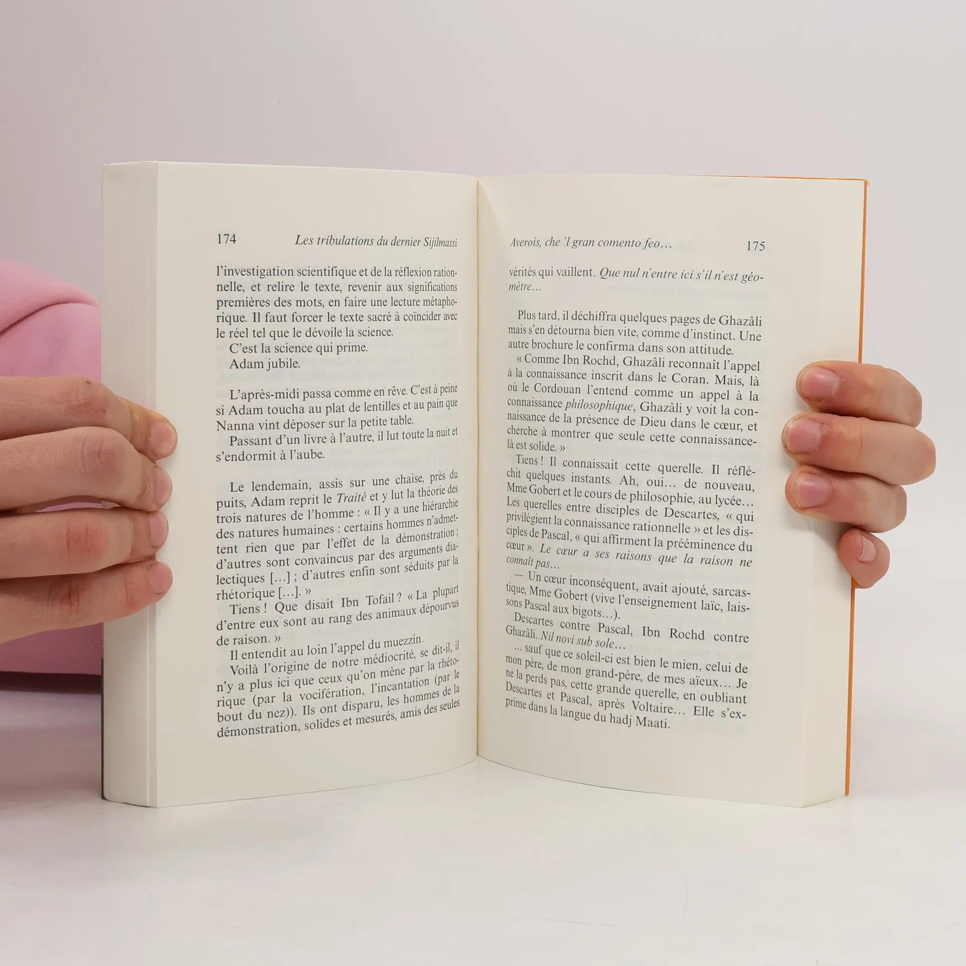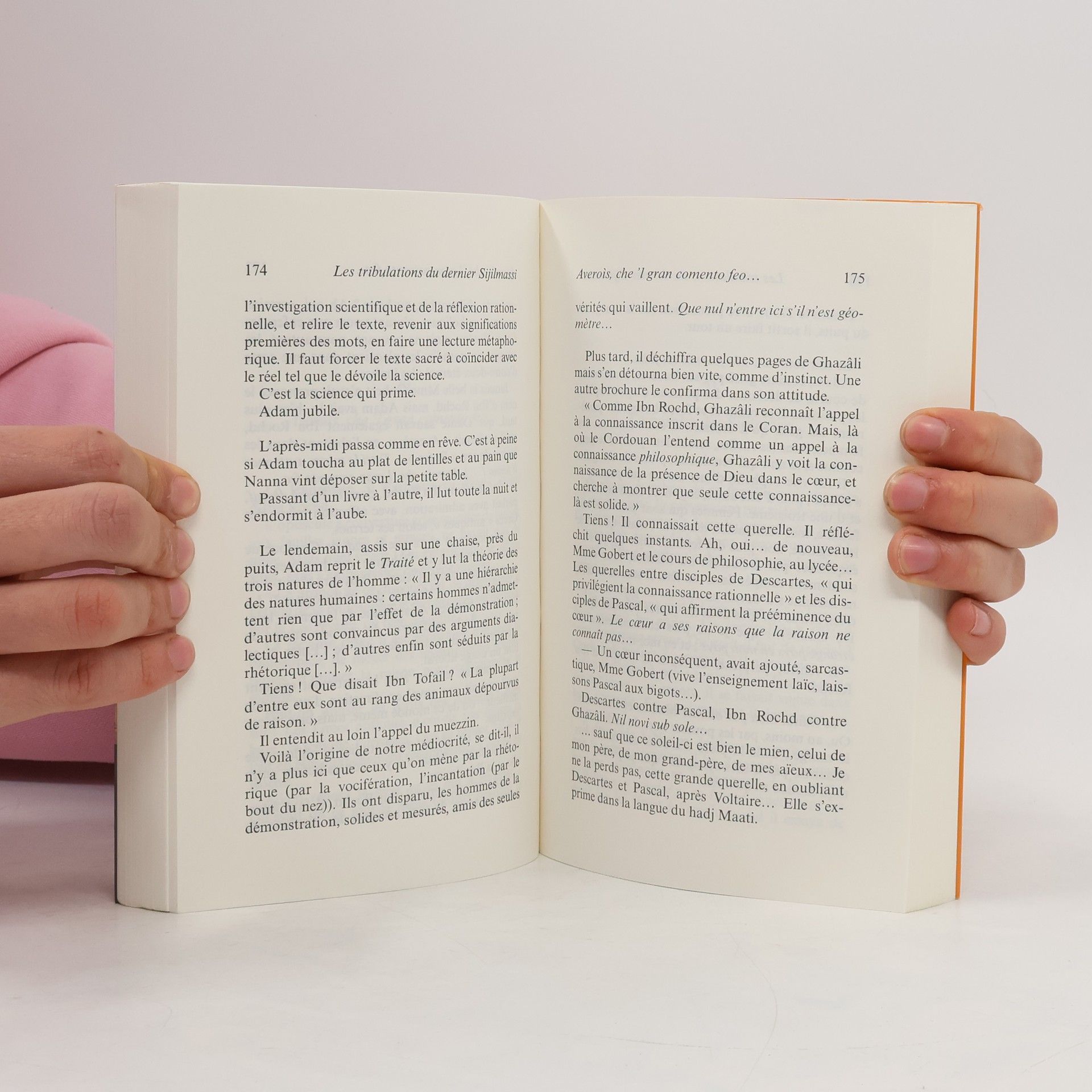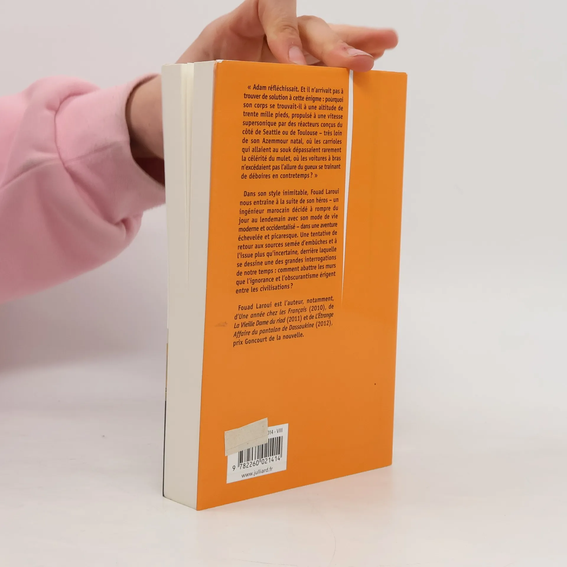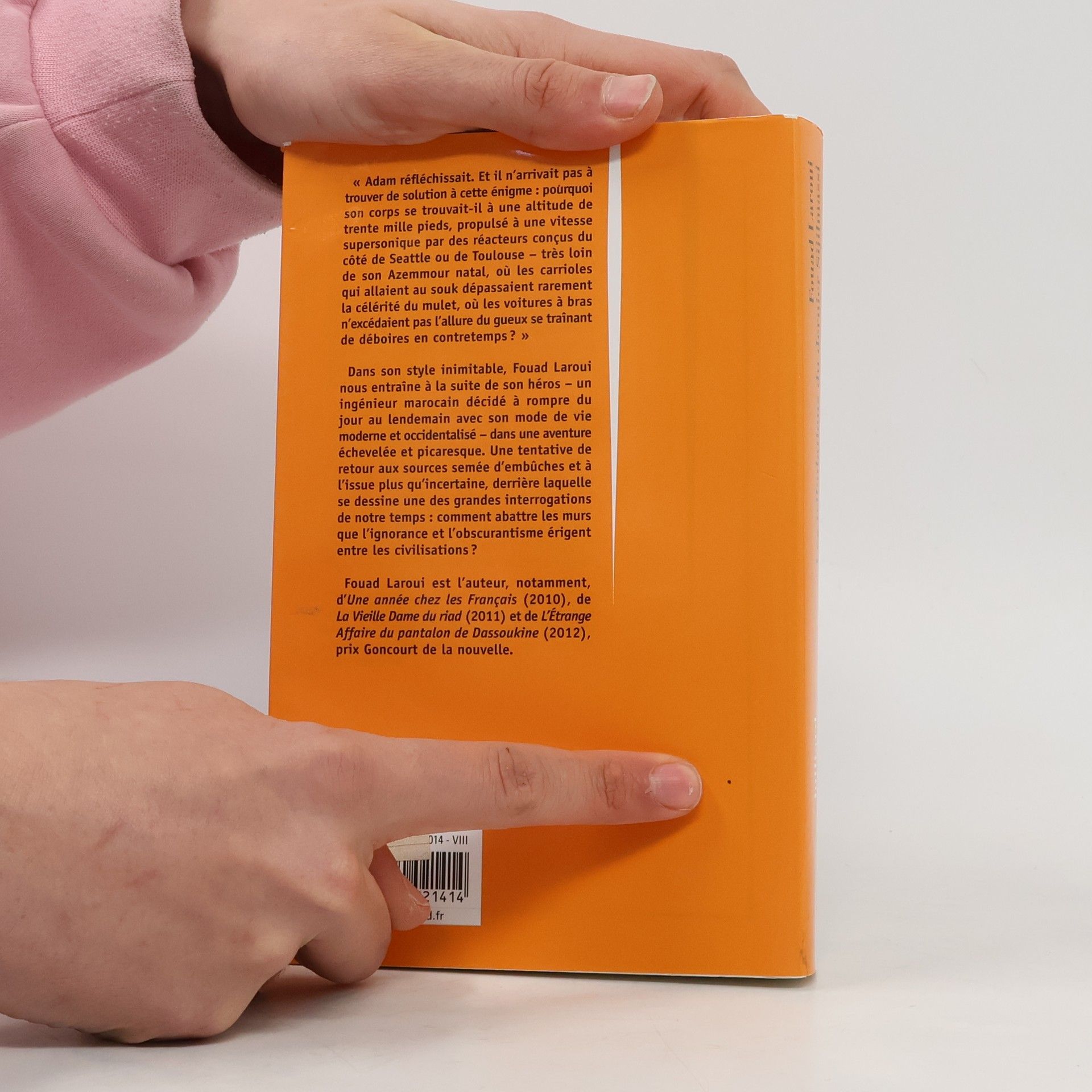 Un ingénieur marocain décide du jour au lendemain de rompre avec son mode de vie occidentalisé.Une tentative de retour aux sources semée d'embûches et à l'issue plus qu'incertaine...Adam Sijilmassi revenait d'Asie ou il avait négocié brillamment la vente de produits chimiques marocains. Alors qu'il survolait la mer d'Andaman, il se posa soudain une question dérangeante : « Que fais-je ici ? » Pourquoi était-il transporté dans les airs, à des vitesses hallucinantes, alors que son père et son grand-père, qui avaient passé leur vie dans les plaines des Doukkala, n'avaient jamais dépassé la vitesse d'un cheval au galop ? Ce fut une illumination. Il décida de renoncer à cette vie qui ne lui ressemblait pas, se résolut à ne plus jamais mettre les pieds dans un avion et à changer totalement de mode de vie. Funeste décision !Arrivé à l'aéroport de Casablanca, il entreprit de rejoindre la ville à pied, ce qui lui valut de rentrer chez lui encadré par deux gendarmes. Dès que sa femme comprit ce qu'il voulait faire, elle retourna vivre chez sa mère, en emportant le chat. À peine avait-il donné sa démission que son employeur le mettait à la porte de son appartement de fonction. Qu'importe, il ne céderait pas. Il se débarrasserait de cette défroque d'ingénieur, nourri au lait du lycée français de Casablanca. Il viderait sa tête de tout ce fatras de fragments de littérature française qui lui compliquait la vie. Il redeviendrait le Marocain authentique qu'il n'aurait jamais dû cesser d'être. Il partit (à pied...) vers son village natal. Fatale décision ! Certes, il redécouvrit la bibliothèque de son grand-père et dévora la littérature et la philosophie qu'avaient produites quelques génies au temps béni de l'Andalousie arabe. Mais, dans son village, personne ne comprenait pourquoi un ingénieur de Casablanca venait s'enfermer dans la maison délabrée de sa famille. Était-il un fou ? Ou un perturbateur ? Un prophète ? Fallait-il l'abattre ou le vénérer ?Dans son style inimitable, Fouad Laroui nous entraîne à la suite de son héros dans une aventure échevelée et picaresque ou se dessine en arrière-plan une des grandes interrogations de notre temps : qui saura détruire le mur que des forces obscures sont en train d'ériger entre l'Orient et l'Occident ?