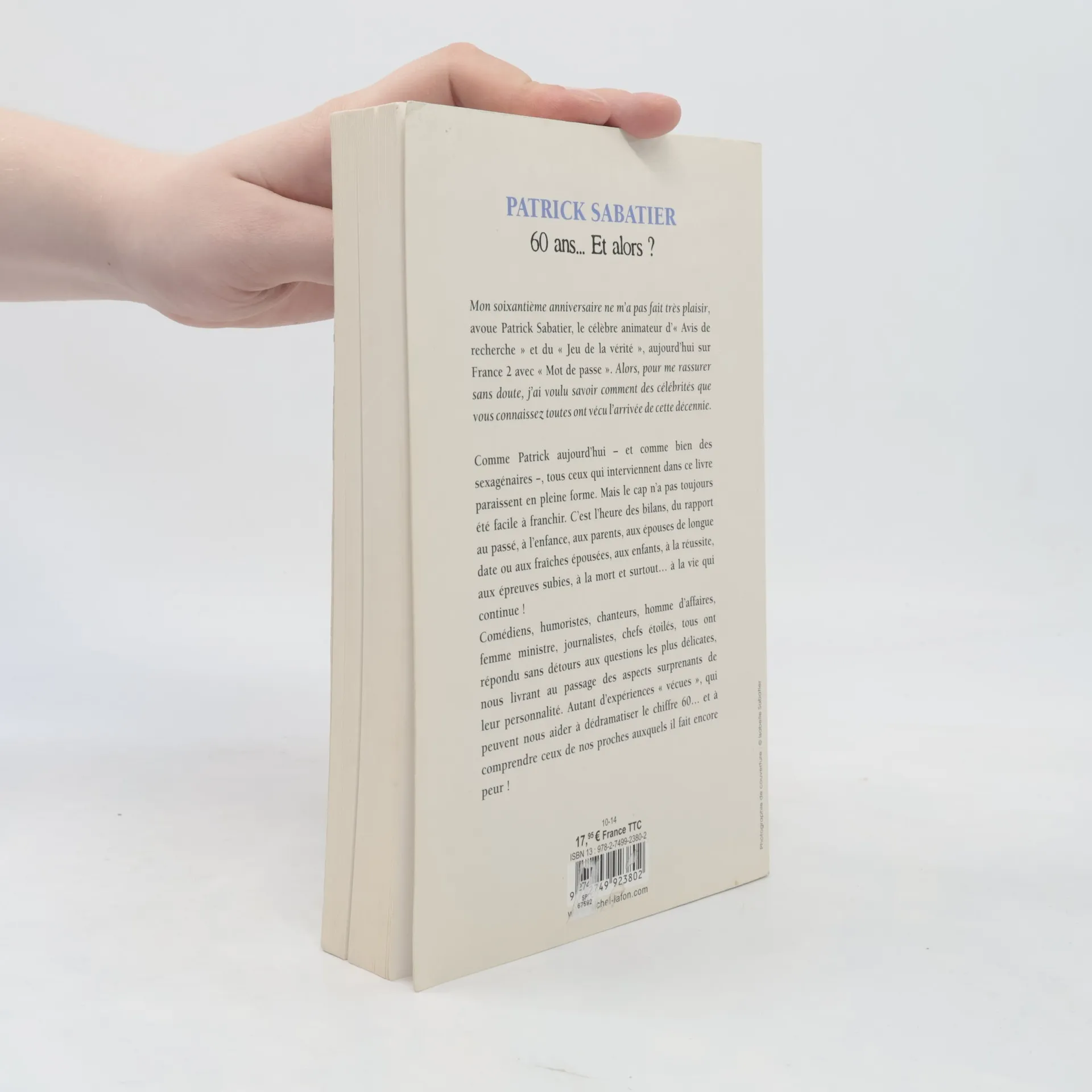 Mon soixantième anniversaire ne m'a pas fait très plaisir, avoue Patrick Sabatier, le célèbre animateur d'«Avis de recherche» et du «Jeu de la vérité», aujourd'hui sur France 2 avec «Mot de passe». Alors, pour me rassurer sans doute, j'ai voulu savoir comment des célébrités que vous connaissez toutes ont vécu l'arrivée de cette décennie. Comme Patrick aujourd'hui - et comme bien des sexagénaires -, tous ceux qui interviennent dans ce livre paraissent en pleine forme. Mais le cap n'a pas toujours été facile à franchir. C'est l'heure des bilans, du rapport au passé, à l'enfance, aux parents, aux épouses de longue date ou aux fraîches épousées, aux enfants, à la réussite, aux épreuves subies, à la mort et surtout... à la vie qui continue ! Comédiens, humoristes, chanteurs, homme d'affaires, femme ministre, journalistes, chefs étoilés, tous ont répondu sans détours aux questions les plus délicates, nous livrant au passage des aspects surprenants de leur personnalité. Autant d'expériences «vécues», qui peuvent nous aider à dédramatiser le chiffre 60... et à comprendre ceux de nos proches auxquels il fait encore peur !