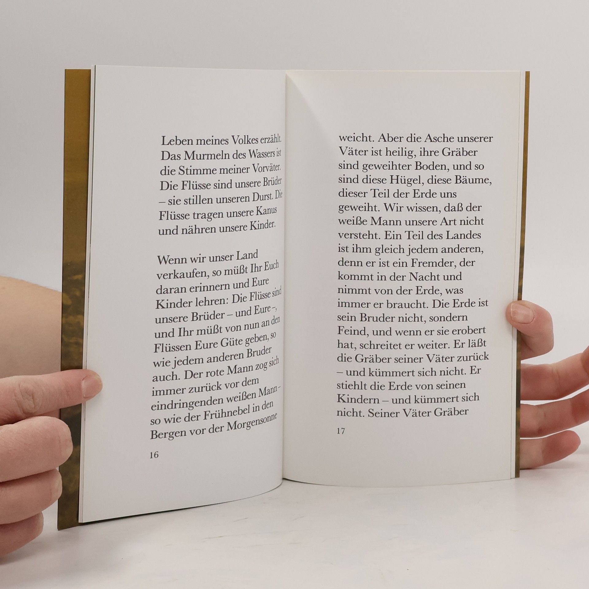 Die 1855 gehaltene Rede des Duwamish-Häuptlings Seattle an den Präsidenten der Vereinigten Staaten ist das berühmteste Zeugnis der Auseinandersetzung zwischen den Ureinwohnern Nordamerikas und den US-Amerikanern. Ein bewegendes Plädoyer für den sorgsamen Umgang mit unserer Erde.