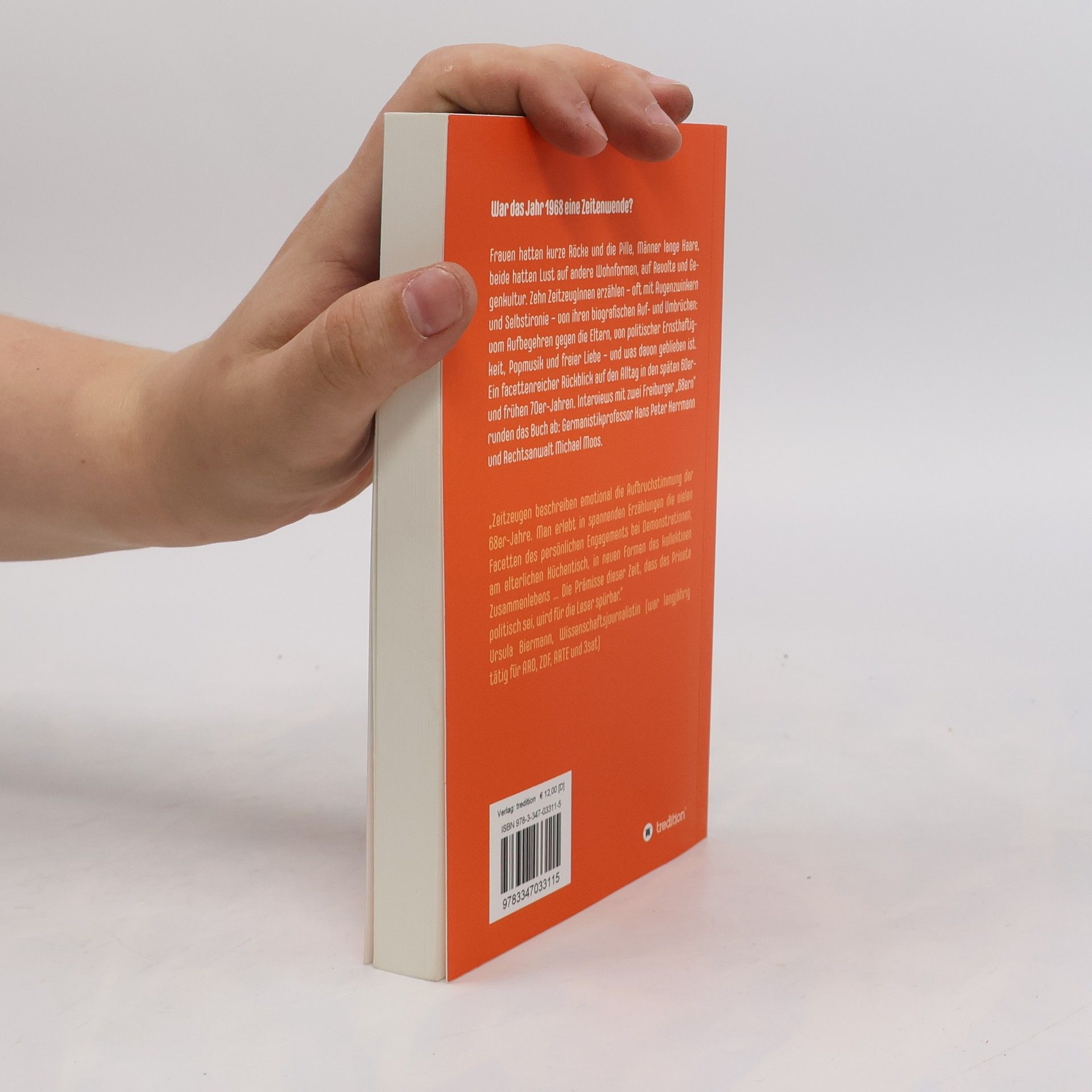 War das Jahr 1968 eine Zeitenwende? Frauen hatten kurze Röcke und die Pille, Männer lange Haare, beide hatten Lust auf andere Wohnformen, auf Revolte und Gegenkultur. Zehn ZeitzeugInnen erzählen - oft mit Augenzwinkern und Selbstironie - von ihren biografischen Auf- und Umbrüchen: vom Aufbegehren gegen die Eltern, von politischer Ernsthaftigkeit, Popmusik und freier Liebe - und was davon geblieben ist. Ein facettenreicher Rückblick auf den Alltag in den späten 60er- und frühen 70er-Jahren. Interviews mit zwei Freiburger "68ern" runden das Buch ab: Germanistikprofessor Hans Peter Herrmann und Rechtsanwalt Michael Moos.