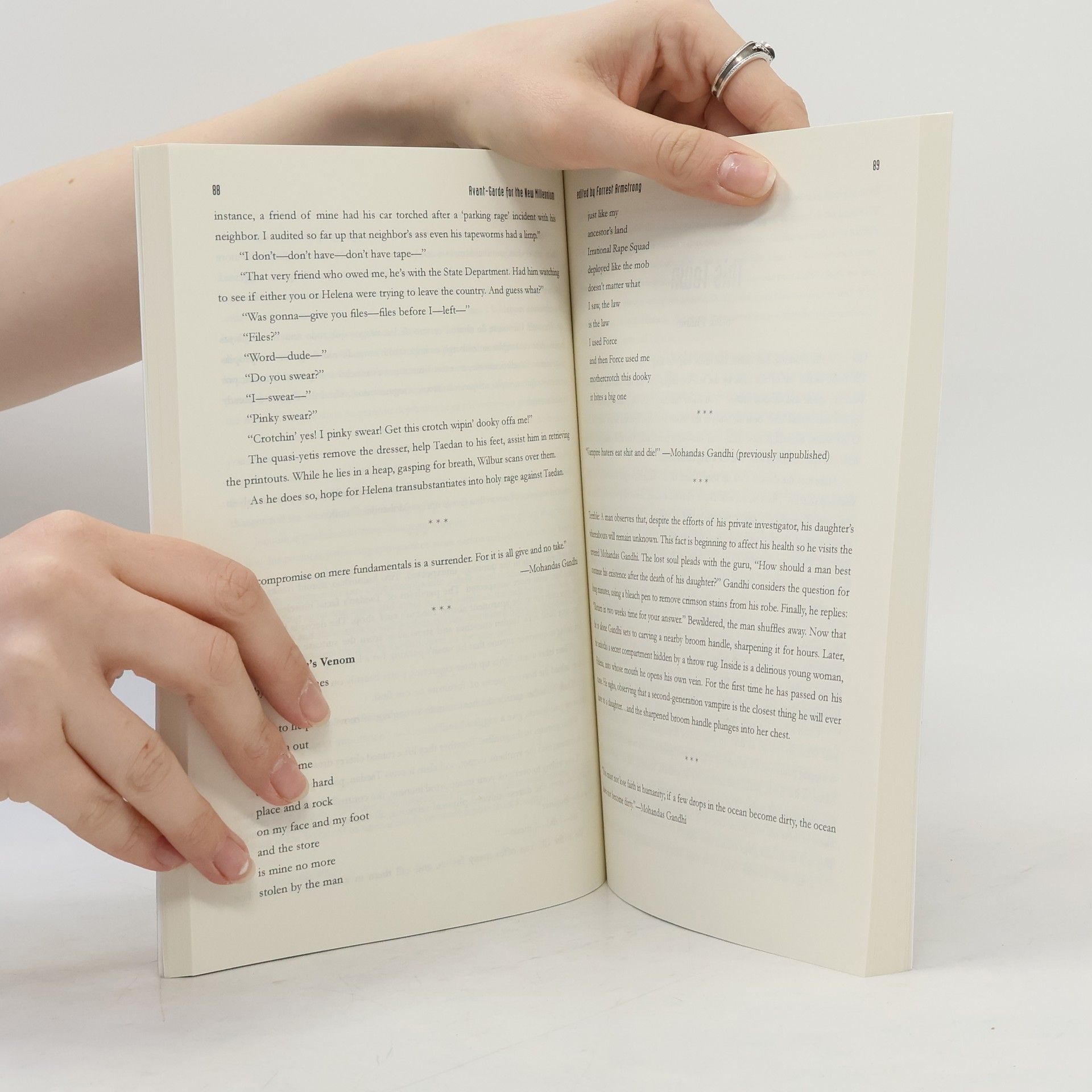 From the introduction: "I began this anthology to dispel the illusion that we are in a famine age of literature and the result surprised even me in how powerfully it shattered that misconception."Words are slippery things and though we have bridled them with grammar, feel at ease in the presence of a common turn of phrase, they have not been completely tamed. And there are still writers who are both brave and foolhardy enough to let words out of their cages, feed them despite the signs that clearly state not to and prod them with sticks to see what they might do.Editor Forrest Armstrong has gone in search of these experimenters, alchemists of verbiage, who wrestle with words in dark places and return with something newly minted, transmogrified and fresh for us to puzzle over."Avant-garde is by definition work on the front line of art, and I accepted every single piece of writing in this anthology because of how fresh it is, how differently the writer approaches his or her art."