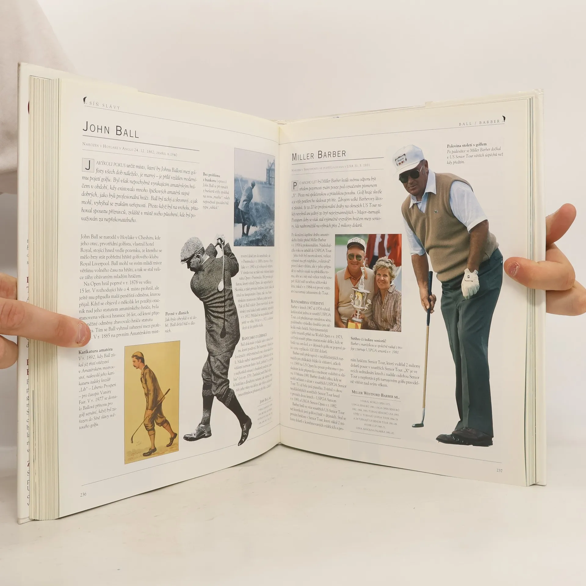 Procházka po světových turnajových hřištích Atraktivní fotografie a unikátní kolekce map přenese každého čtenáře na většinu slavných míst ve světě, která podněcují hráče k vrcholným výkonům. Jsou jim zdrojem potěšení, radosti ze hry i soupeřem, překážkou, již je třeba zdolat. O charakteristických vlastnostech každého hřiště detailně pojednává připojený komentář. Portréty znamenitých hráčů Přední sportovní novinář Malcolm Campbell připravil a vedl rozhovory nejen s řadou hráčů legendárních jmen, ale i s těmi, kteří patří k současné světové špičce. Ve zvláštní kapitole nazvané Síň slávy se mezi rovnou stovkou golfových celebrit seznámíte s takovými šampióny, jakými byli Harry Vardon, Bobby Jones nebo Jack Nicklaus, a ovšem i s hvězdami první velikosti novodobé éry - s Tigerem Woodsem, Davidem Duvalem, Leem Westwoodem či Sergiem Garciou. Znamenitý obraz minulosti. Srozumitelná, bohatě ilustrovaná část vás poutavým způsobem seznámí s historií golfu. Ukáže, že jedinečná atmosféra této hry přetrvává celá staletí, a stane se vyhledávaným čtením pro všechny golfové fanoušky dnešních dnů. zdroj: www.bux.cz