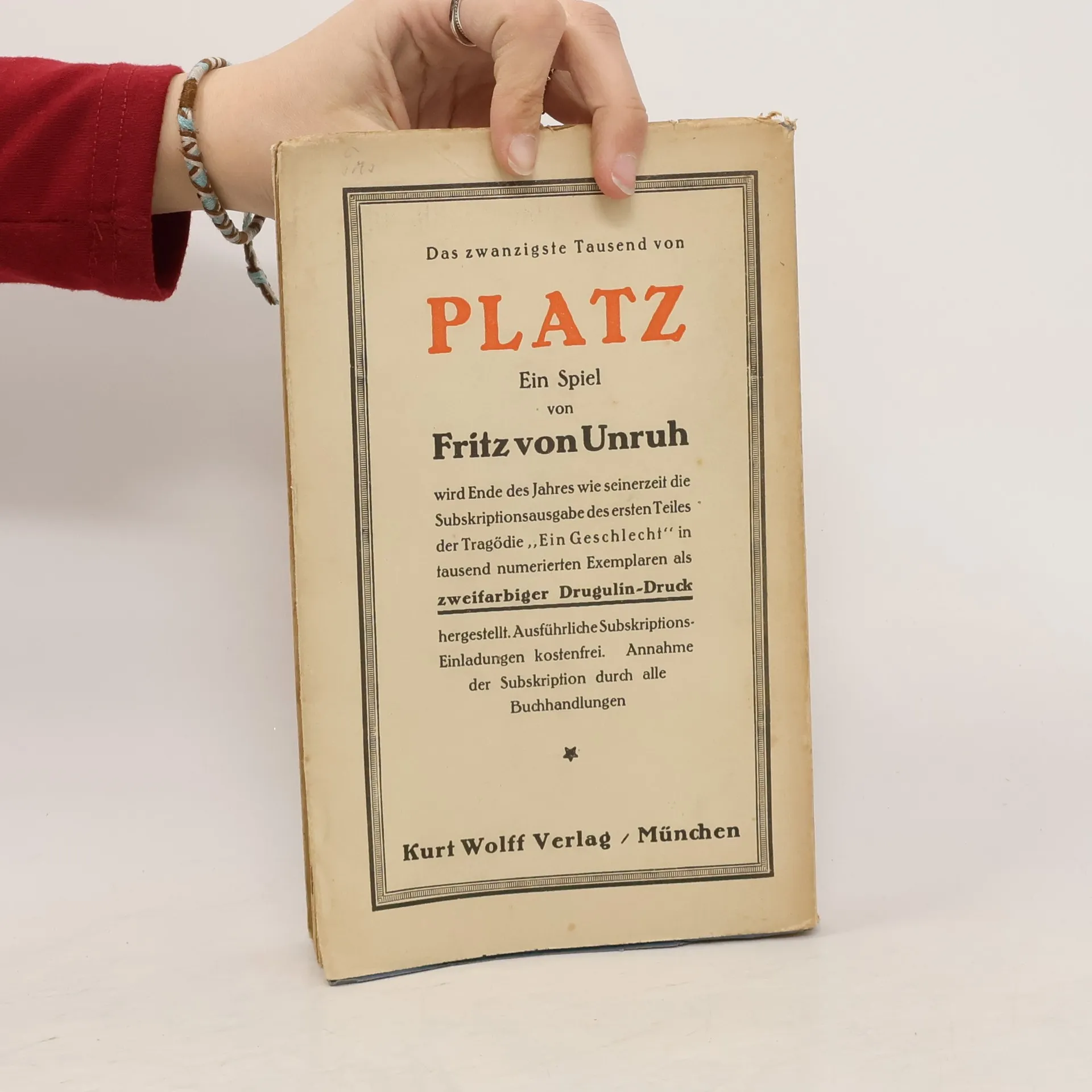 Platz. Ein Spiel, Fritz von Unruh