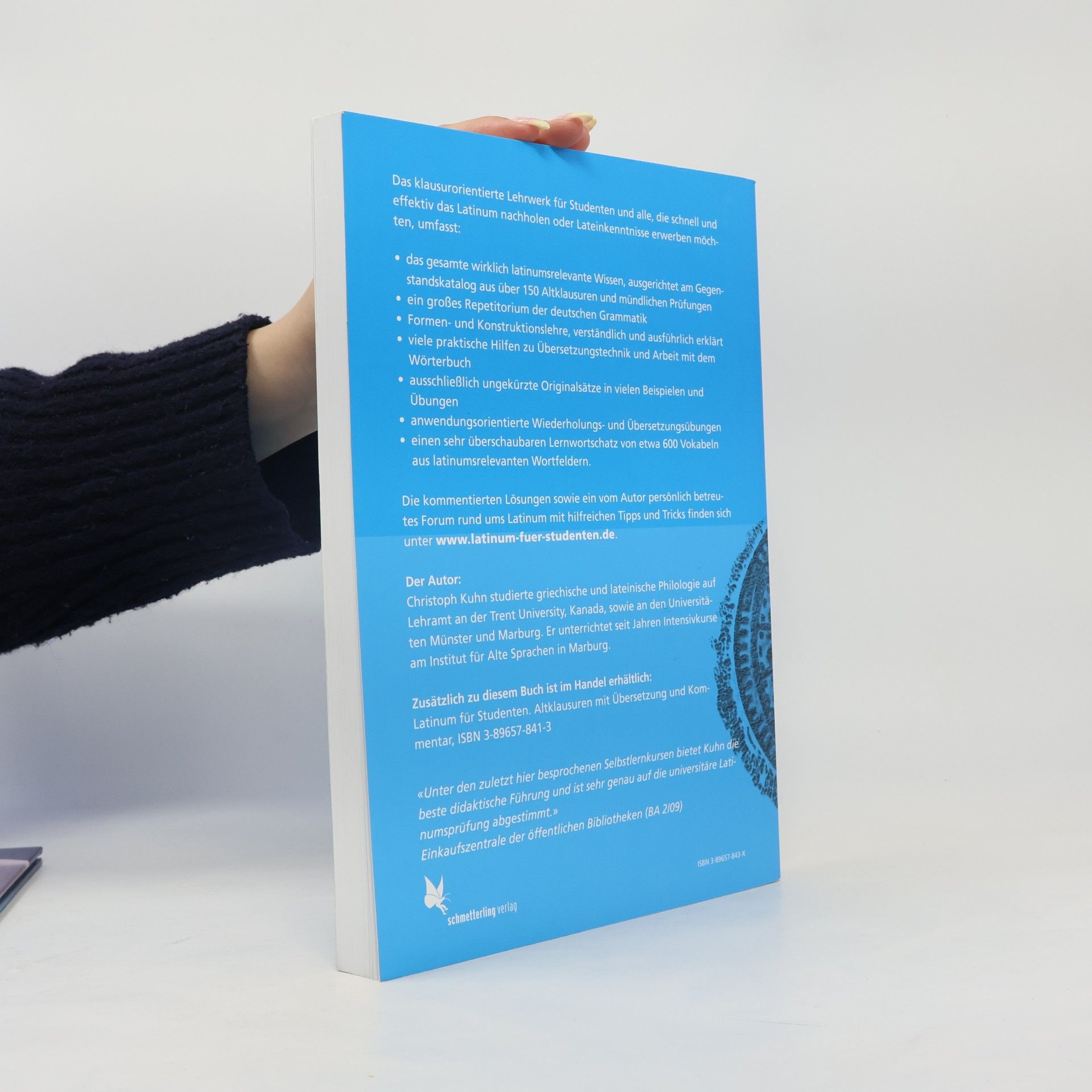 Ein kompaktes, klausurorientiertes Lateinlehrbuch für Nachholer des Latinums fehlte bislang auf dem deutschen Buchmarkt. Deshalb legt Christoph Kuhn jetzt einen maßgeschneiderten Kurs vor, der dieser Zielgruppe die Möglichkeit gibt, sich gezielt auf die staatliche Abiturergänzungsprüfung vorzubereiten. Das für die Prüfung notwendige Wissen wird ausführlich und redundant vermittelt, so dass es auch für das Selbststudium geeignet ist. Es holt den Durchschnittsstudenten genau dort ab, wo er wirklich steht, und setzt keine ausgeprägten grammatischen Vorkenntnisse voraus. Die Grammatik ist verständlich und unterhaltsam geschrieben. Das dazu gehörige zweite Buch 'Altklausuren mit Kommentar und Übersetzung' umfasst ausnahmslos Altklausuren (Cicero, Cäsar und Sallust), die in der Vergangenheit auch in den Prüfungen gestellt wurden.