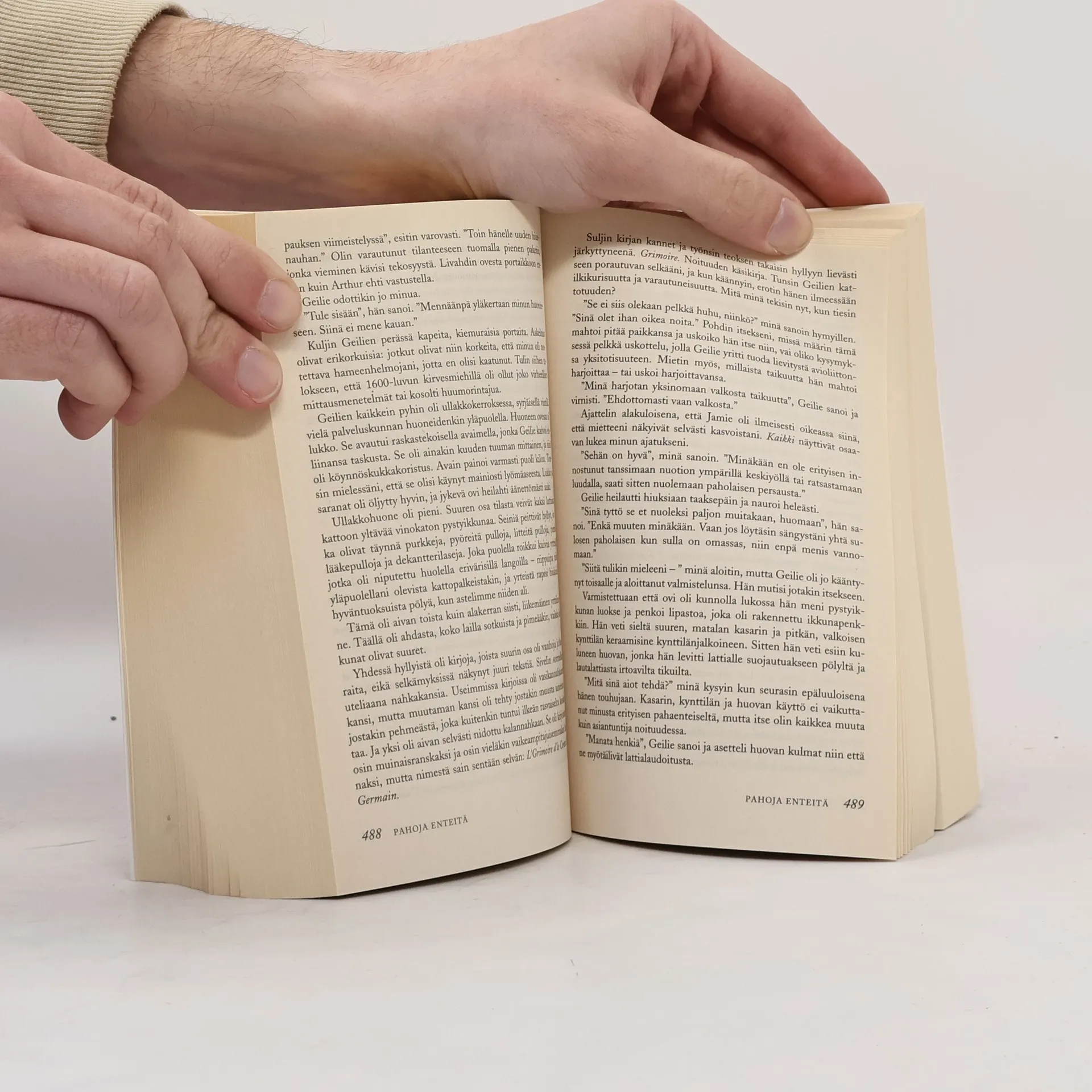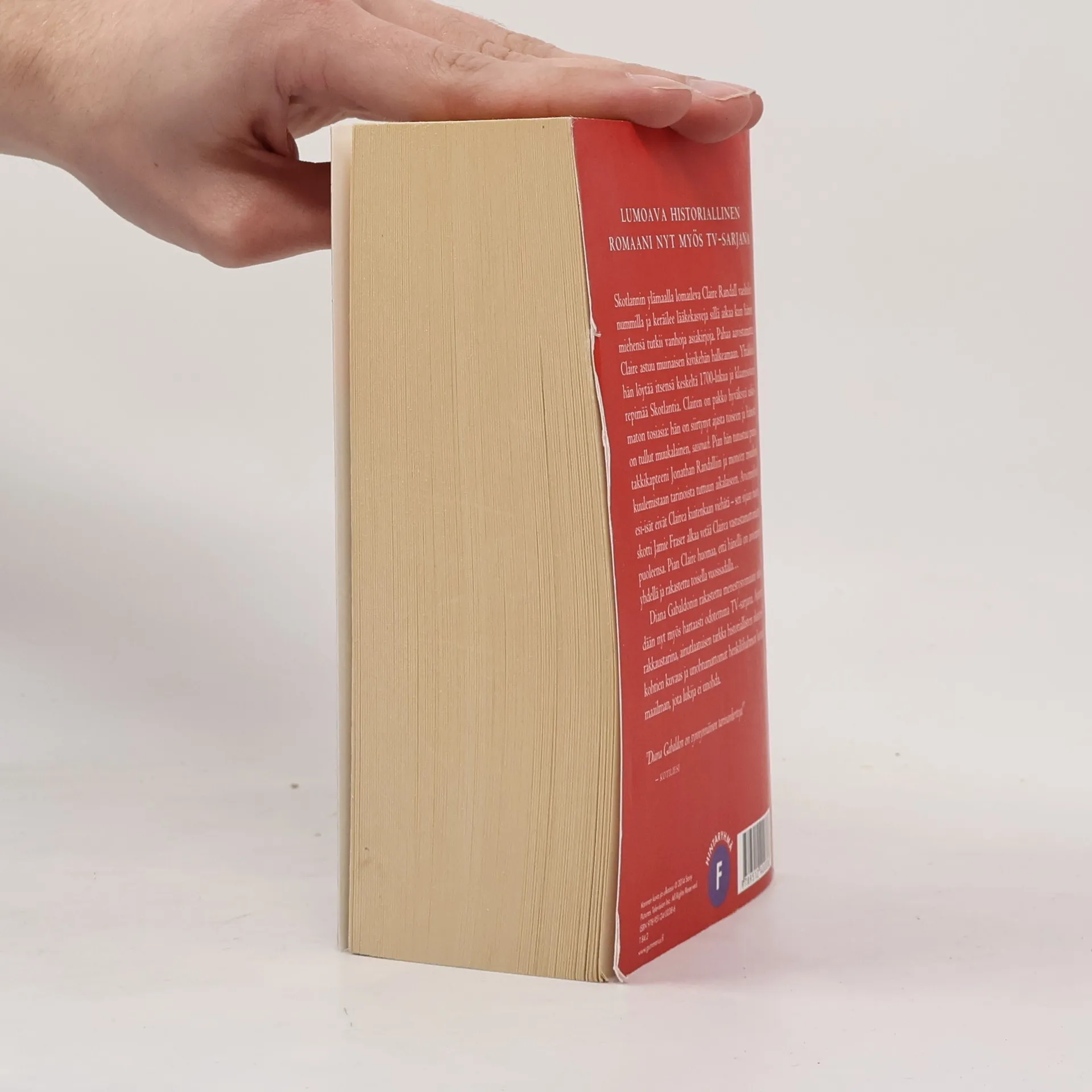 Description of a earlier printing: Toinen maailmansota on juuri ohi, kun Claire ja Frank Randall lähtevät lomalle Frankin esi-isien synnyinseudulle Skotlannin ylämaalle. Sillä aikaa kun Frank tutkii vanhoja papereita, Claire vaeltelee nummilla ja keräilee lääkekasveja. Pahaa aavistamatta Claire astuu muinaisen kivikehän halkeamaan. Yhtäkkiä hän löytää itsensä keskeltä 1700-lukua ja klaanisotien riepomaa Skotlantia. Clairen on pakko hyväksyä uskomaton tosiasia: hän on siirtynyt ajasta toiseen ja hänestä on tullut muukalainen, sassenach. Pian hän tutustuu punatakkikapteeni Jonathan Randalliin ja moneen muuhun Frankin tarinoista tuttuun aikalaiseen. Frankin esi-isät eivät Clairea kuitenkaan viehätä - sen sijaan salskea nuori skotti alkaa vetää Clairea vastustamattomasti puoleensa. Claire saa pian vakoojan ja noidan leiman otsaansa, siksi oudolta hän sairaanhoitajan taitoineen vaikuttaa. MacKenzien klaanin suojissa hän kokee pakoretken toisensa perään. Ja pian Claire saa havaita, että hänellä on aviomies yhdellä ja rakastettu toisella vuosisadalla. Description of the th 9th printing: Skotlannin ylämaalla lomaileva Claire Randall vaeltelee nummilla ja keräilee lääkekasveja. Pahaa aavistamatta Claire astuu muinaisen kivikehän halkeamaan. Yhtäkkiä hän löytää itsensä keskeltä 1700-lukua ja klaanisotien riepomaa Skotlantia. Clairen on pakko hyväksyä uskomaton tosiasia: hän on siirtynyt ajasta toiseen ja hänestä on tullut muukalainen, sassenach. Pian hän tutustuu punatakkikapteeni Jonathan Randalliin ja moneen muuhun kuulemastaan tarinoista tuttuun aikalaiseen. Aviomiehen esi-isät eivät Clairea kuitenkaan viehätä - sen sijaan nuori skotti James Fraser alkaa vetää Clairea vastustamattomasti puoleensa. Pian Claire huomaa, että hänellä on aviomies yhdellä ja rakastettu toisella vuosisadalla...