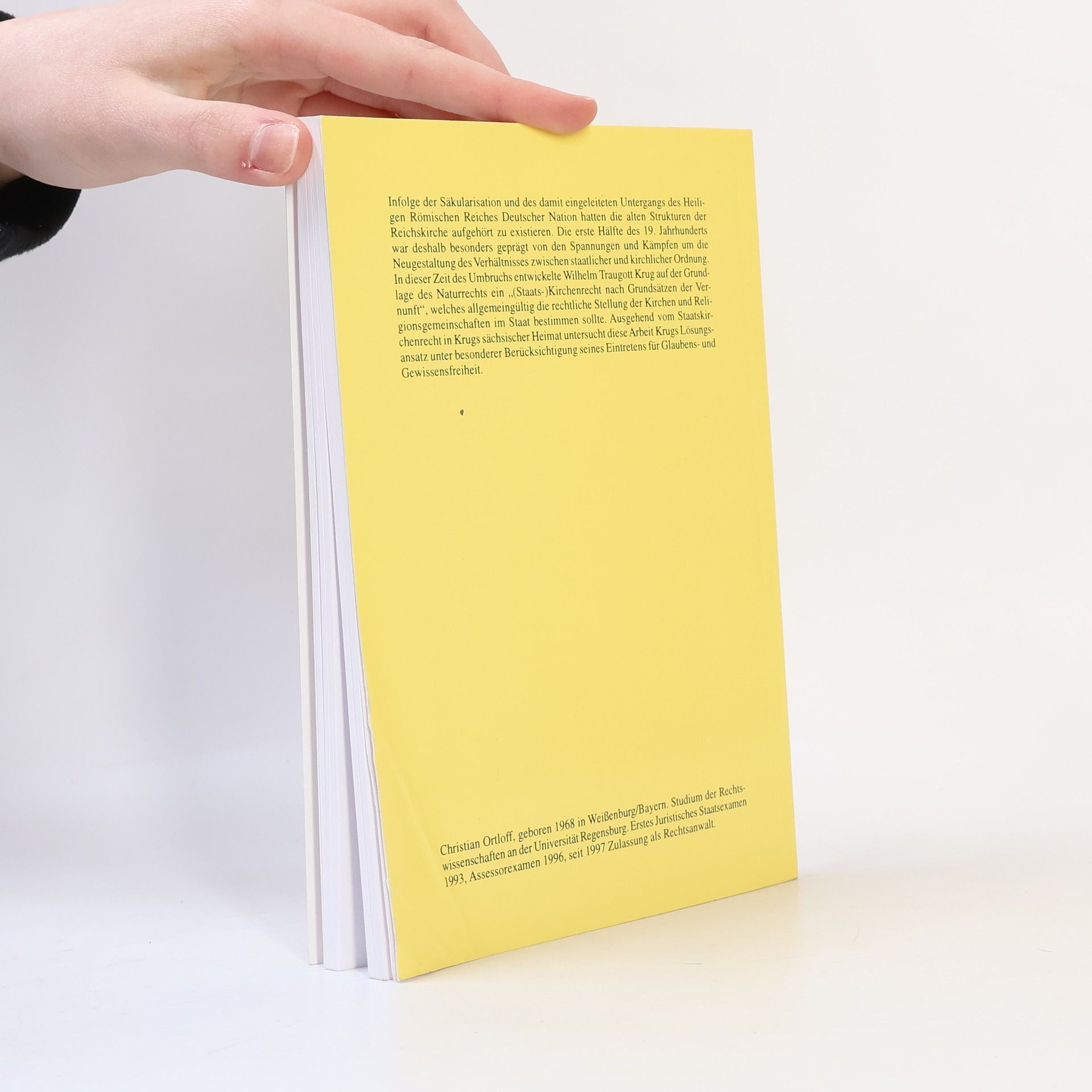 Infolge der Säkularisation und des damit eingeleiteten Untergangs des Heiligen Römischen Reiches hatten die alten Strukturen der Reichskirche aufgehört zu existieren. Die erste Hälfte des 19. Jahrhunderts war deshalb besonders geprägt von den Spannungen und Kämpfen um die Neugestaltung des Verhältnisses zwischen staatlicher und kirchlicher Ordnung. In dieser Zeit des Umbruchs entwickelte Wilhelm Traugott Krug auf der Grundlage des Naturrechts ein «(Staats-)Kirchenrecht nach Grundsätzen der Vernunft», welches allgemeingültig die rechtliche Stellung der Kirchen und Religionsgemeinschaften im Staat bestimmen sollte. Ausgehend vom Staatskirchenrecht in Krugs sächsischer Heimat untersucht diese Arbeit Krugs Lösungsansatz unter besonderer Berücksichtigung seines Eintretens für Glaubens- und Gewissensfreiheit.