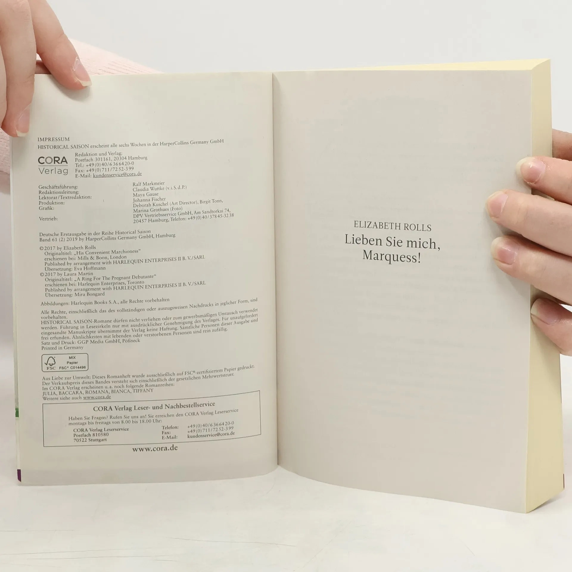 LIEBEN SIE MICH, MARQUESS! von ROLLS, ELIZABETH "Niemals, Mylord.” Lady Emma lehnt den kühlen Heiratsantrag des attraktiven Marquess of Huntercombe ab. Nur aus Liebe würde sie ihn ehelichen! Doch dann droht ihrem Sohn Gefahr, und die Angst treibt Emma zum Marquess. Sie sucht Hilfe - und verliert ihr Herz. Aber kann der scheinbar gefühlskalte Casanova ihre Liebe erwidern? LORD HUNTERS LIEBESFLUCH von MARTIN, LAURA Ein schrecklicher Liebesfluch liegt auf seiner Familie, und Lord Hunter ist sich sicher: Er darf niemals heiraten. Doch als er eine junge Dame aus höchster Not rettet, gerät sein Entschluss ins Wanken. Denn Rosa Rothwell ist nicht nur hinreißend, klug und verführerisch, sie ist auch guter Hoffnung - und braucht einen Ehemann!