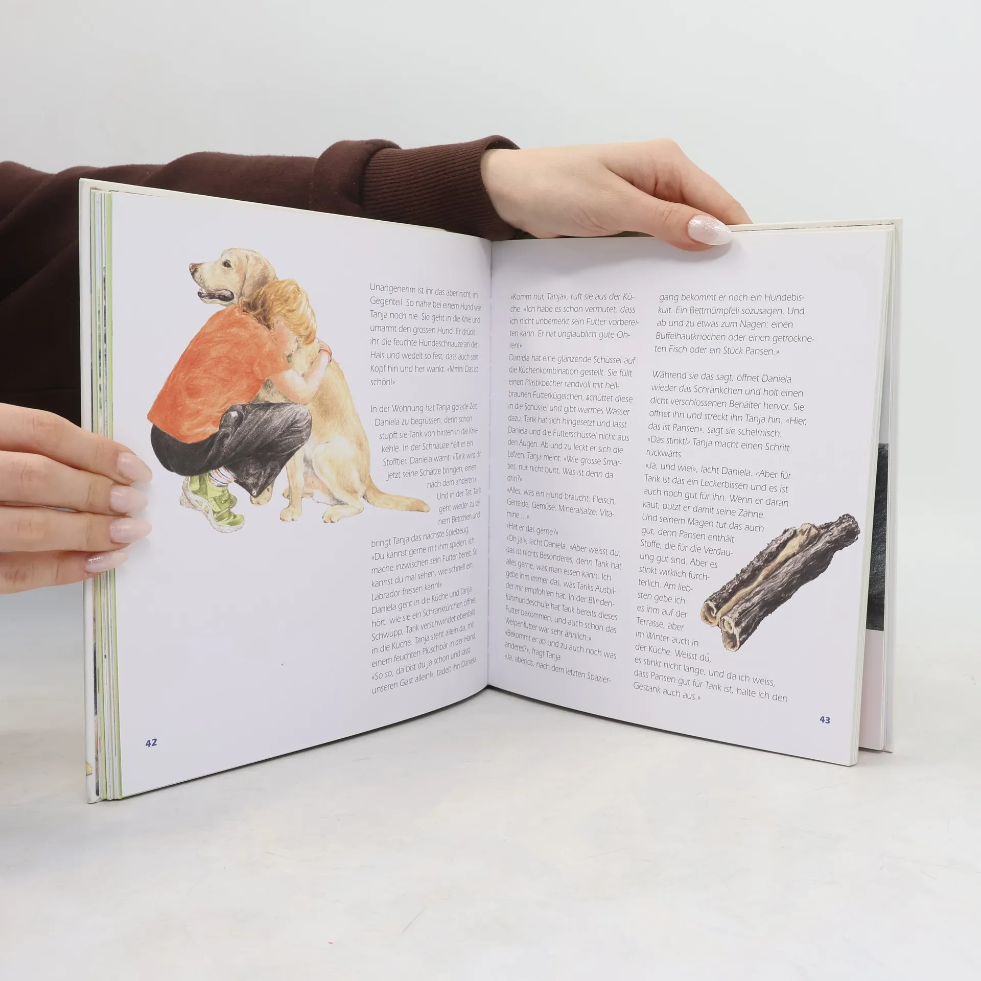 Die zehnjährige Tanja begegnet einer jungen sehbehinderten Frau und ihrem Blindenführhund, Tarik. Das Mädchen, das sich nach einem eigenen Hund sehnt, ist mehr und mehr von Tarik fasziniert. Auch die Art und Weise, wie die sehbehinderte Daniela selbstbewusst durch Leben geht, weckt ihre Neugier. Wunderschöne Zeichnungen von Sandra Weber lassen die Geschichte richtig lebendig werden. Informative Doppelseiten machen das Kinderbuch zusätzlich zu einem Schatzkästchen der Hundekunde. Braille Alphabet Karte und Buchzeichen mit Braille Schrift