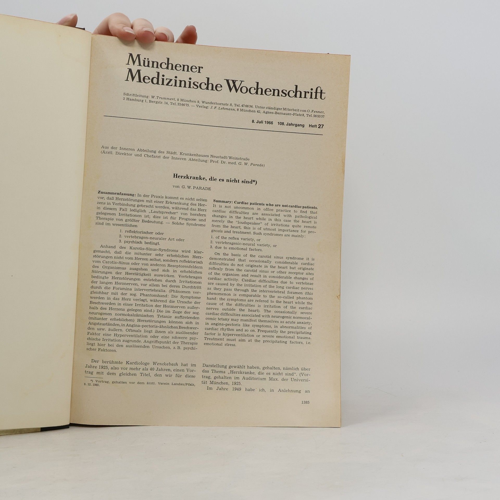 Münchener Medizinische Wochenschrift. 108. Jahrgang II., Autorenkollektiv