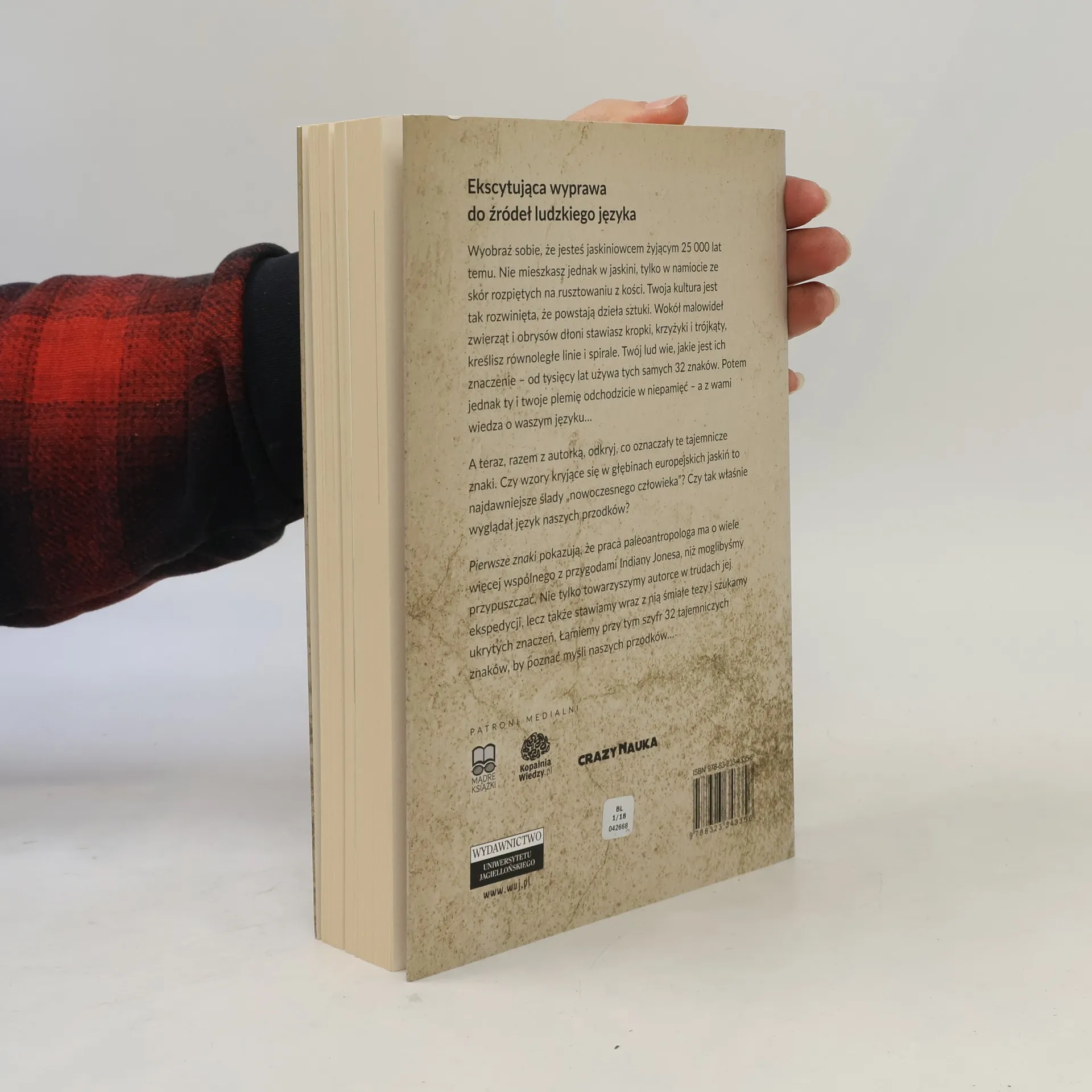 Ekscytująca wyprawa do źródeł ludzkiego języka przenosi nas 25 000 lat wstecz, do czasów, gdy jaskiniowcy tworzyli dzieła sztuki w obozowiskach ze skór i kości. Ich kultura była na tyle rozwinięta, że używali 32 znaków, które miały głębokie znaczenie. Wraz z autorką odkrywamy, co kryją te tajemnicze symbole, zastanawiając się, czy są one najstarszymi śladami nowoczesnego człowieka i jak wyglądał język naszych przodków. Praca paleoantropologa okazuje się pełna przygód, a autorka stawia śmiałe tezy, szukając ukrytych znaczeń i łamiąc szyfr tych znaków. Genevieve von Petzinger, archeolog i detektyw, odkrywa tajemnice artystów z epoki lodowej, ukazując ich miłość do natury i podobieństwa do współczesnych ludzi. Jej badania nad 32 znakami mogą rzucić nowe światło na myśli ludzi z czasów paleolitu, a jeśli jej hipotezy się potwierdzą, mogą stać się jednym z najważniejszych odkryć naukowych. Autorka, specjalizująca się w europejskich malowidłach, jest jedynym naukowcem badającym związki między najstarszymi znakami abstrakcyjnymi, a jej wystąpienia na TED Talks zdobyły ogromne uznanie.