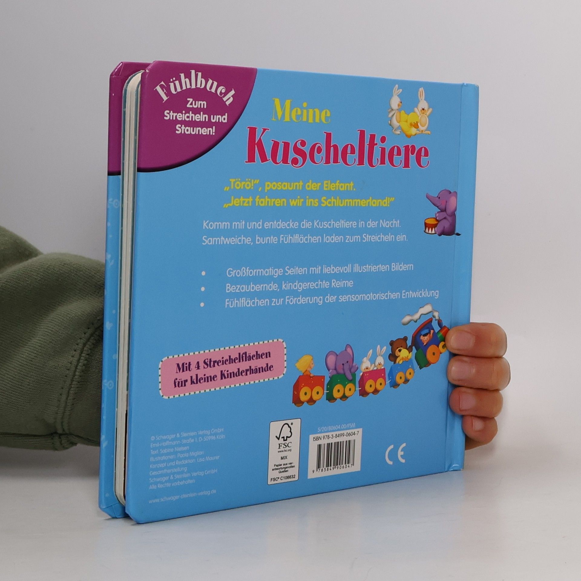 Meine Kuscheltiere „Töro!“, posaunt der Elefant. „Jetzt fahren wir ins Schlummerland!“ Komm mit, und entdecke die Kuscheltiere in der Nacht. Samtweiche, bunte Fühlflächen laden zum Streicheln ein. - Großformatige Seiten mit liebevoll illustrierten Bildern - Bezaubernde, kindgerechte Reime - Fühlflächen zur Förderung der sensomotorischen Entwicklung aus geprüftem Qualitätsmaterial - Mit 4 Streichelflächen für kleine Kinderhände - Für Mädchen und Jungen ab 12 Monaten