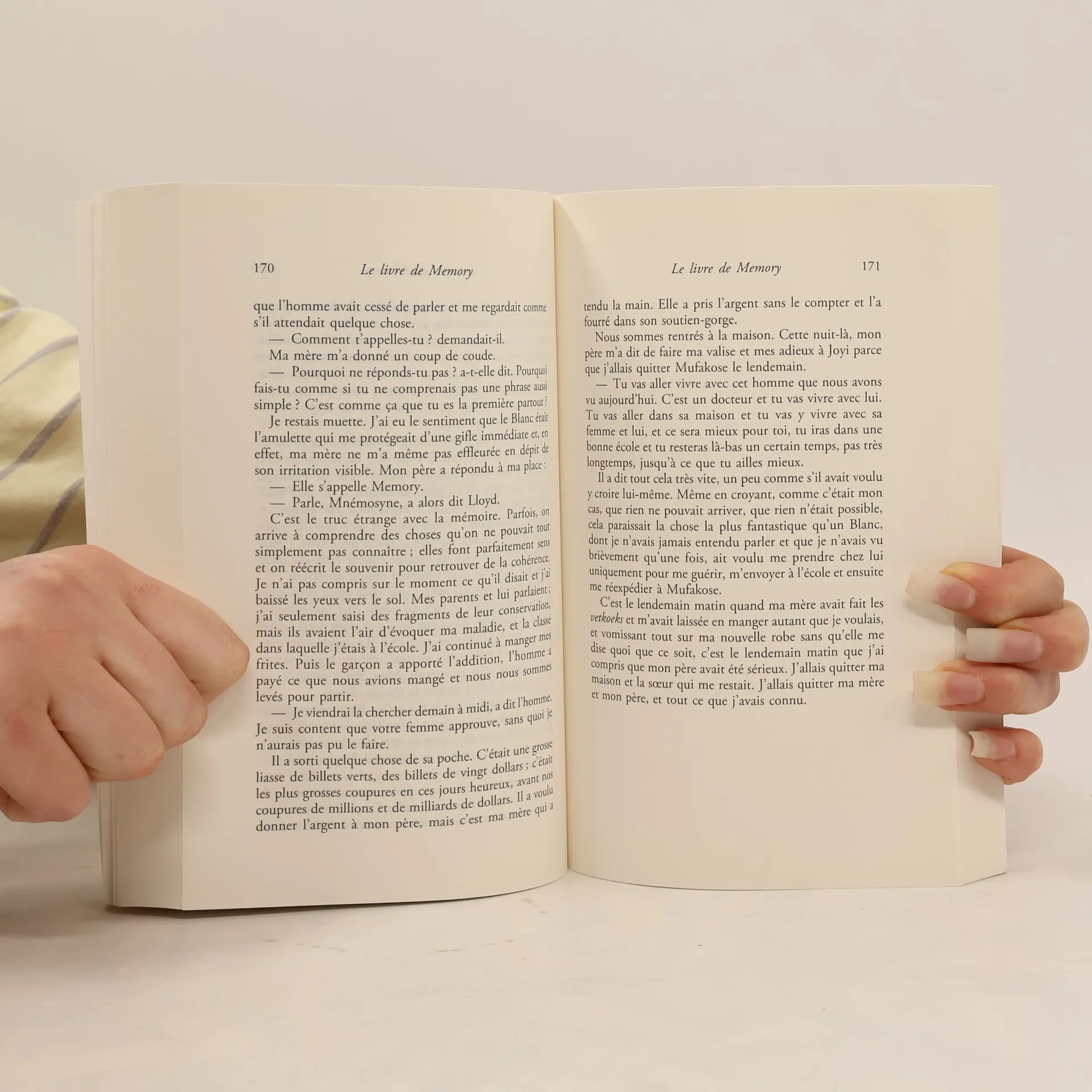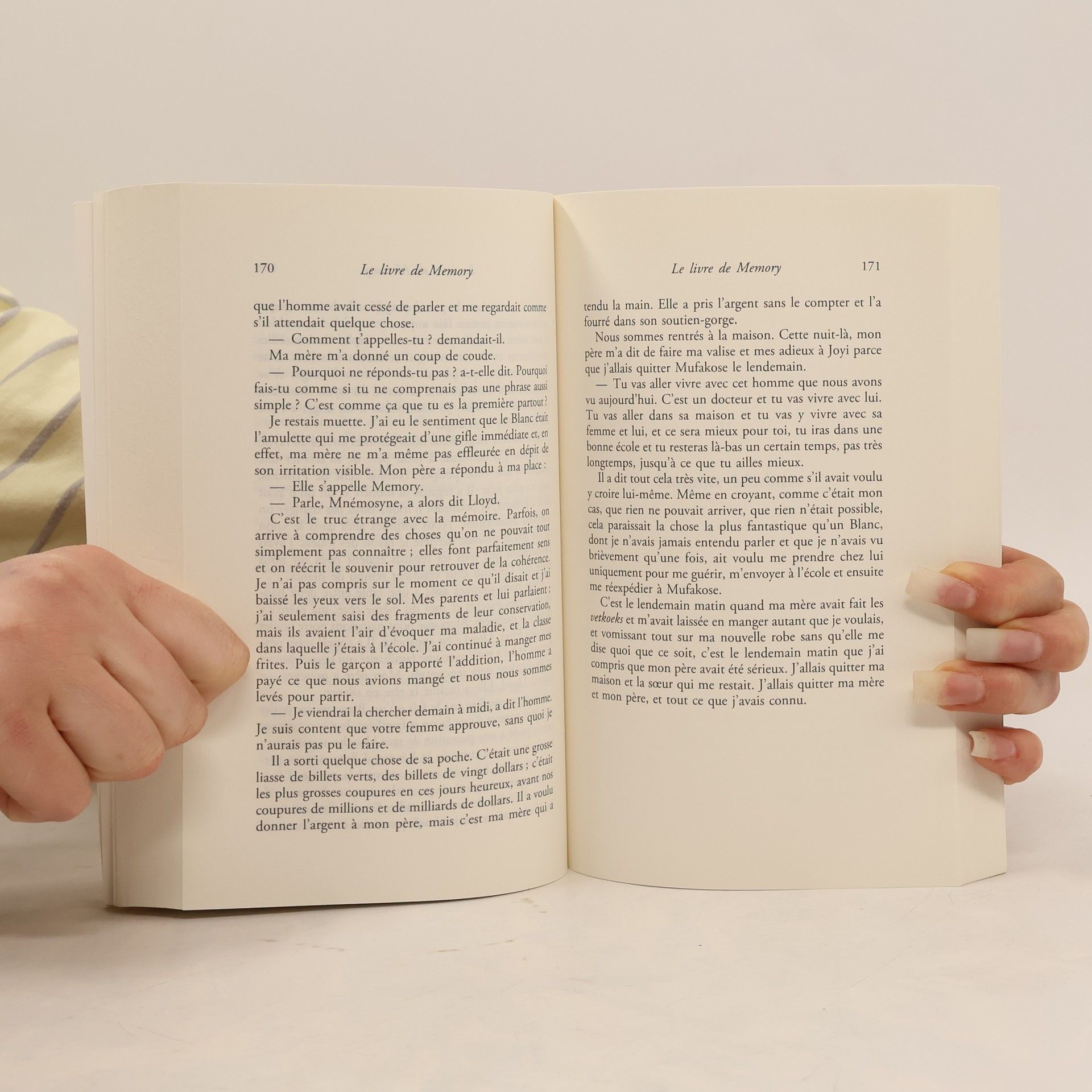 « L’histoire que vous m’avez demandé de vous raconter ne commence pas avec la mort, d’une hideur déplorable, de Lloyd. Elle commence par une journée d’août, il y a bien longtemps, quand j’avais neuf ans, que le soleil brûlait mon visage couvert de cloques et que mon père et ma mère me vendaient à un homme étrange. » Enfermée dans le couloir de la mort, pour un crime qu'elle n'a pas commis, Memory se souvient : son enfance joyeuse dans le township près d'Harare, où la nuit les sorcières mangent les enfants. Son attachement pour cet homme blanc, mystérieux et érudit, qui lui a donné une éducation et l'amour des livres... Désormais, Memory partage ses interminables journées avec Verity et Jimmy, l'arnaqueuse et la prostituée. Entre rire et émotion, le passé resurgit et éclaire son improbable destin. D'une écriture étincelante, mélodique, ce roman plonge le lecteur dans un monde de mystères, de dérisions et d'énergie vitale.