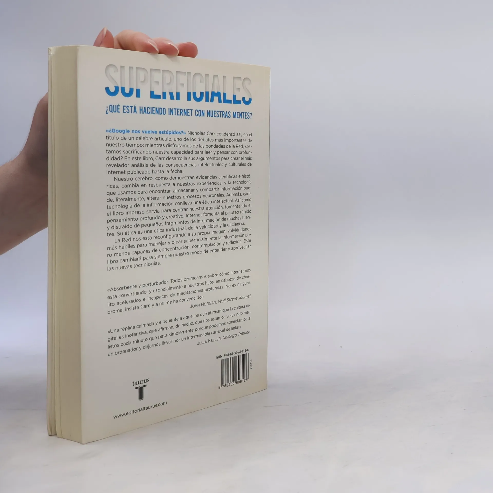 «¿Google nos vuelve estúpidos?» Nicholas Carr condensó así, en el título de un célebre artículo, uno de los debates más importantes de nuestro tiempo: mientras disfrutamos de las bondades de la Red, ¿estamos sacrificando nuestra capacidad para leer y pensar con profundidad? En este libro, Carr desarrolla sus argumentos para crear el más revelador análisis de las consecuencias intelectuales y culturales de Internet publicado hasta la fecha. Nuestro cerebro, como demuestran las evidencias científicas e históricas, cambia en respuesta a nuestras experiencias, y la tecnología que usamos para encontrar, almacenar y compartir información puede, literalmente, alterar nuestros procesos neuronales. Además, cada tecnología de la información conlleva una ética intelectual. Así como el libro impreso servía para centrar nuestra atención, fomentando el pensamiento profundo y creativo, Internet fomenta el picoteo rápido y distraído de pequeños fragmentos de información de muchas fuentes. Su ética es una ética industrial, de la velocidad y la eficiencia. La Red nos está reconfigurando a su propia imagen, volviéndonos más hábiles para manejar y ojear superficialmente la información pero menos capaces de concentración, contemplación y reflexión. Este libro cambiará para siempre nuestro modo de entender y aprovechar las nuevas tecnologías.