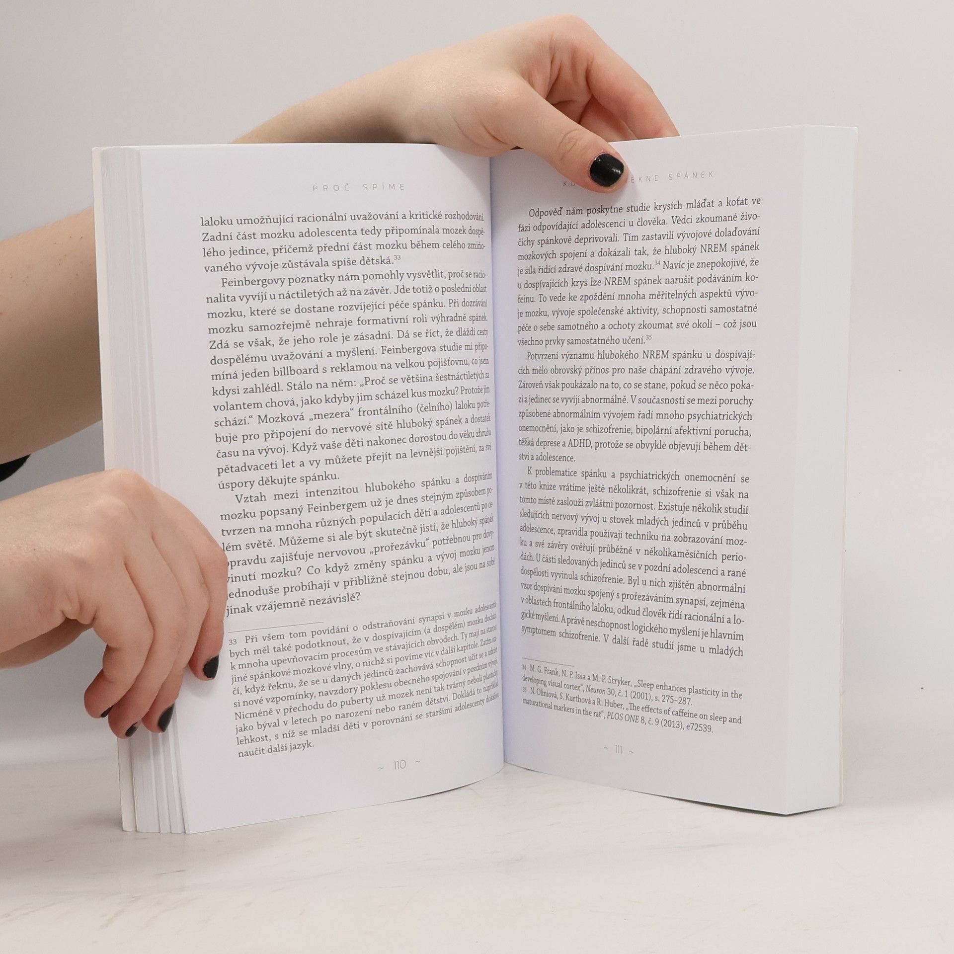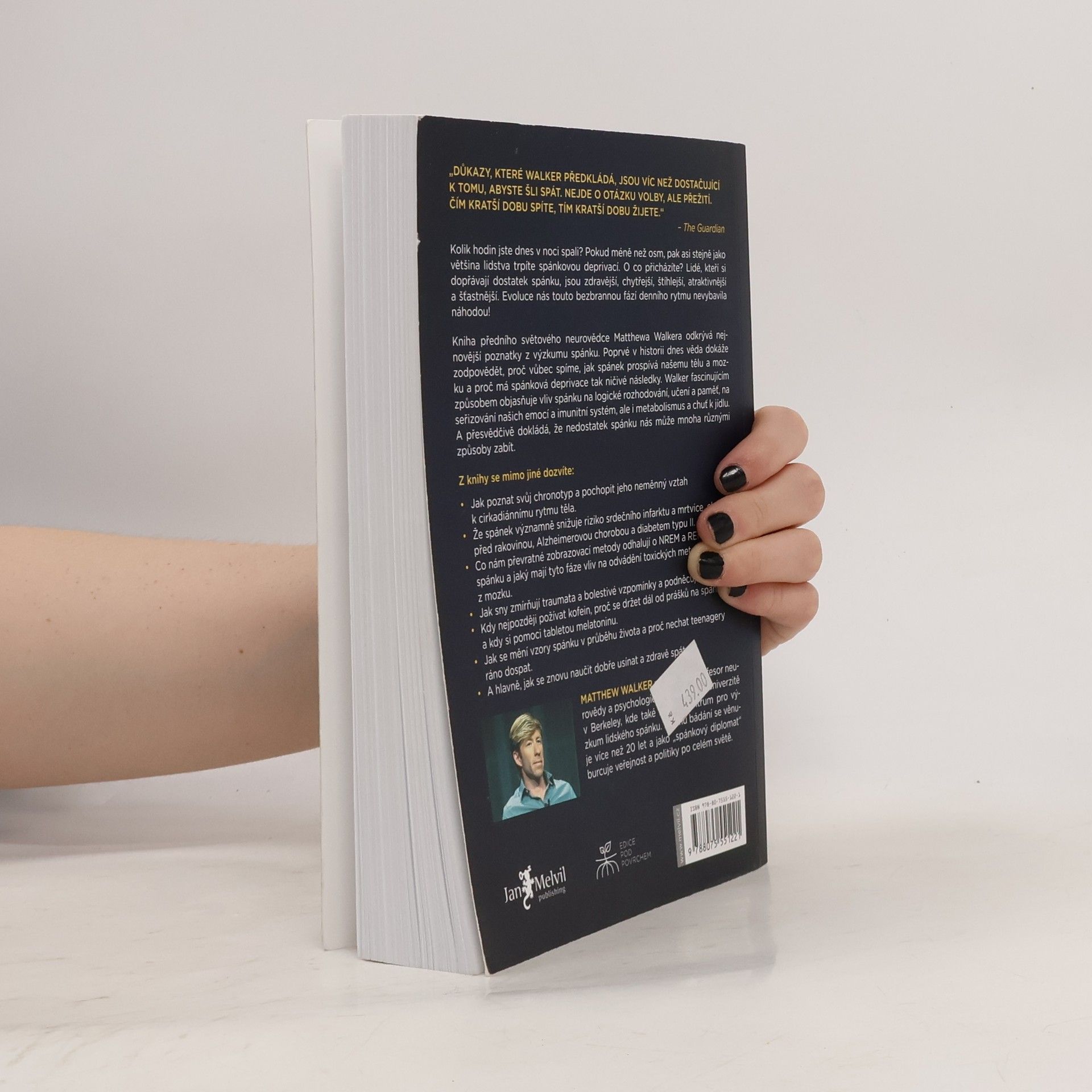 Kolik hodin jste dnes v noci spali? Pokud méně než osm, pak asi stejně jako většina lidstva trpíte spánkovou deprivací. O co přicházíte? Lidé, kteří si dopřávají dostatek spánku, jsou zdravější, chytřejší, štíhlejší, atraktivnější a šťastnější. Evoluce nás touto bezbrannou fází denního rytmu nevybavila náhodou! Kniha předního světového neurovědce Matthewa Walkera odkrývá nejnovější poznatky z výzkumu spánku. Poprvé v historii dnes věda dokáže zodpovědět, proč vůbec spíme, jak spánek prospívá našemu tělu a mozku a proč má spánková deprivace tak ničivé následky. Walker fascinujícím způsobem objasňuje vliv spánku na logické rozhodování, učení a paměť, na seřizování našich emocí a imunitní systém, ale i metabolismus a chuť k jídlu. A přesvědčivě dokládá, že nedostatek spánku nás může mnoha různými způsoby zabít.