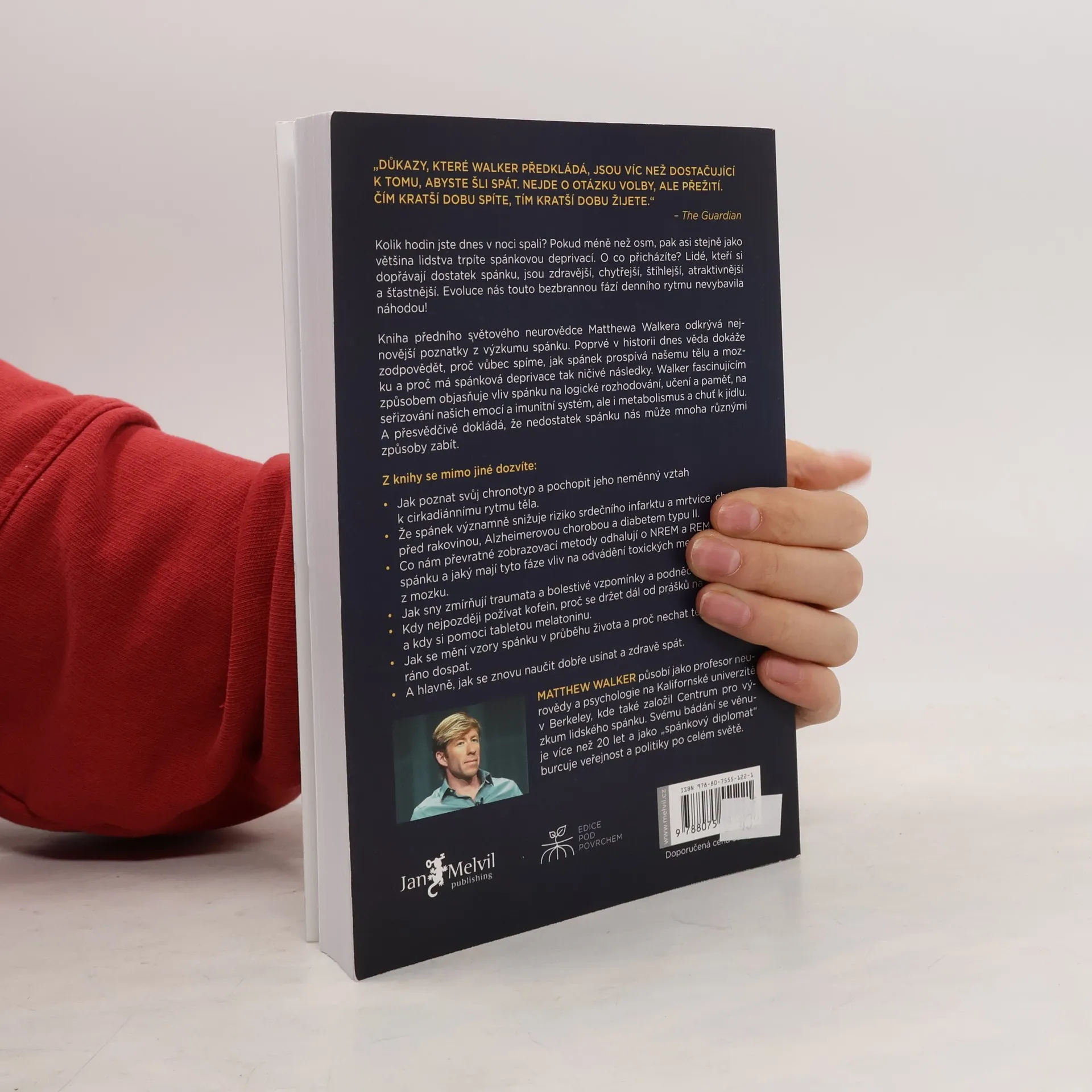 Kolik hodin jste dnes v noci spali? Pokud méně než osm, pak asi stejně jako většina lidstva trpíte spánkovou deprivací. O co přicházíte? Lidé, kteří si dopřávají dostatek spánku, jsou zdravější, chytřejší, štíhlejší, atraktivnější a šťastnější. Evoluce nás touto bezbrannou fází denního rytmu nevybavila náhodou! Kniha předního světového neurovědce Matthewa Walkera odkrývá nejnovější poznatky z výzkumu spánku. Poprvé v historii dnes věda dokáže zodpovědět, proč vůbec spíme, jak spánek prospívá našemu tělu a mozku a proč má spánková deprivace tak ničivé následky. Walker fascinujícím způsobem objasňuje vliv spánku na logické rozhodování, učení a paměť, na seřizování našich emocí a imunitní systém, ale i metabolismus a chuť k jídlu. A přesvědčivě dokládá, že nedostatek spánku nás může mnoha různými způsoby zabít.