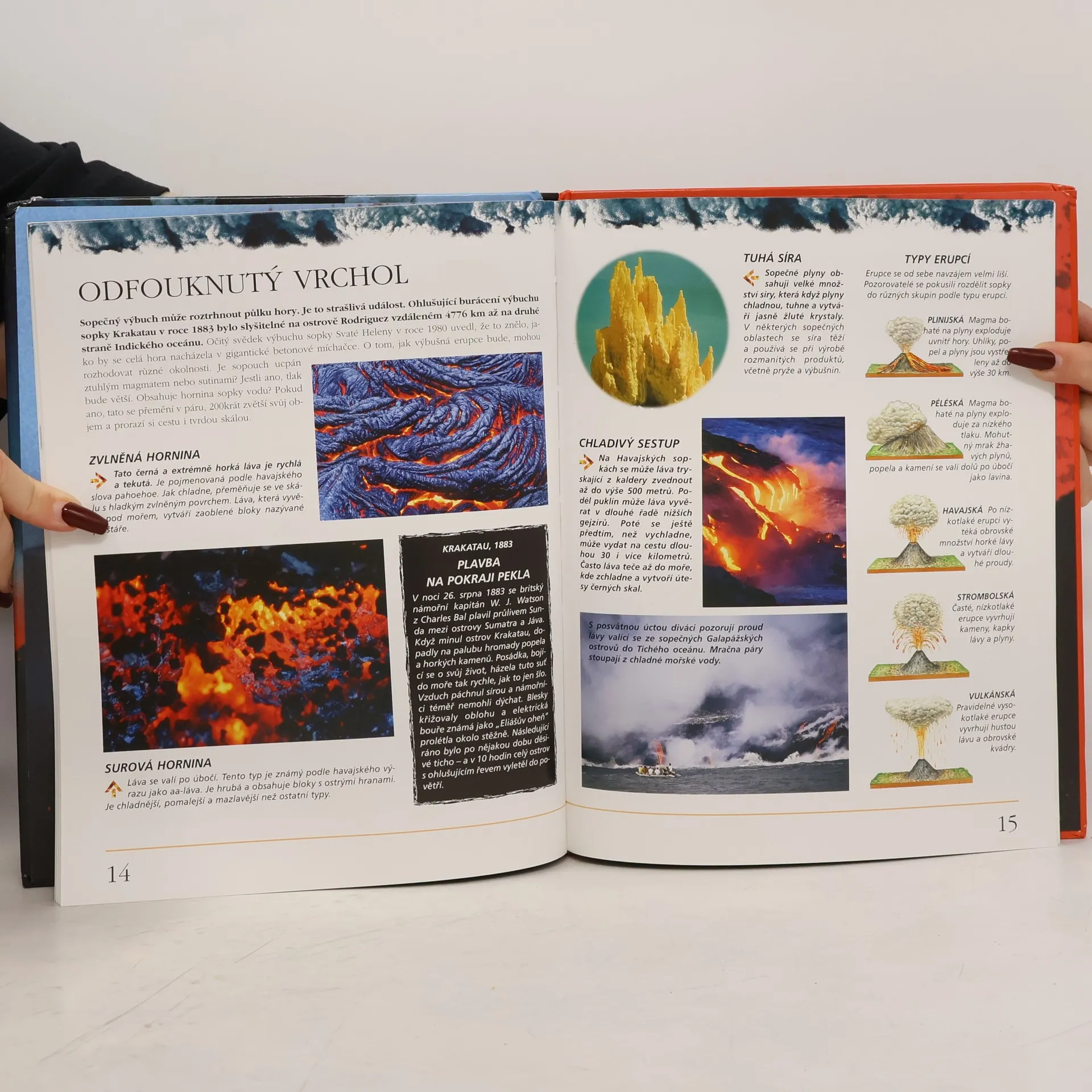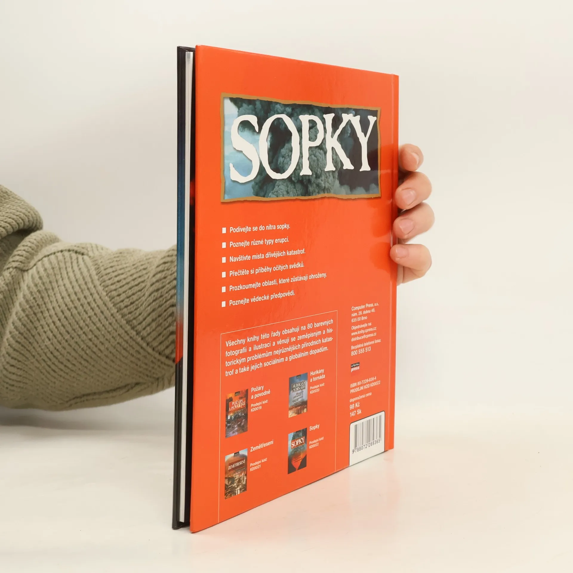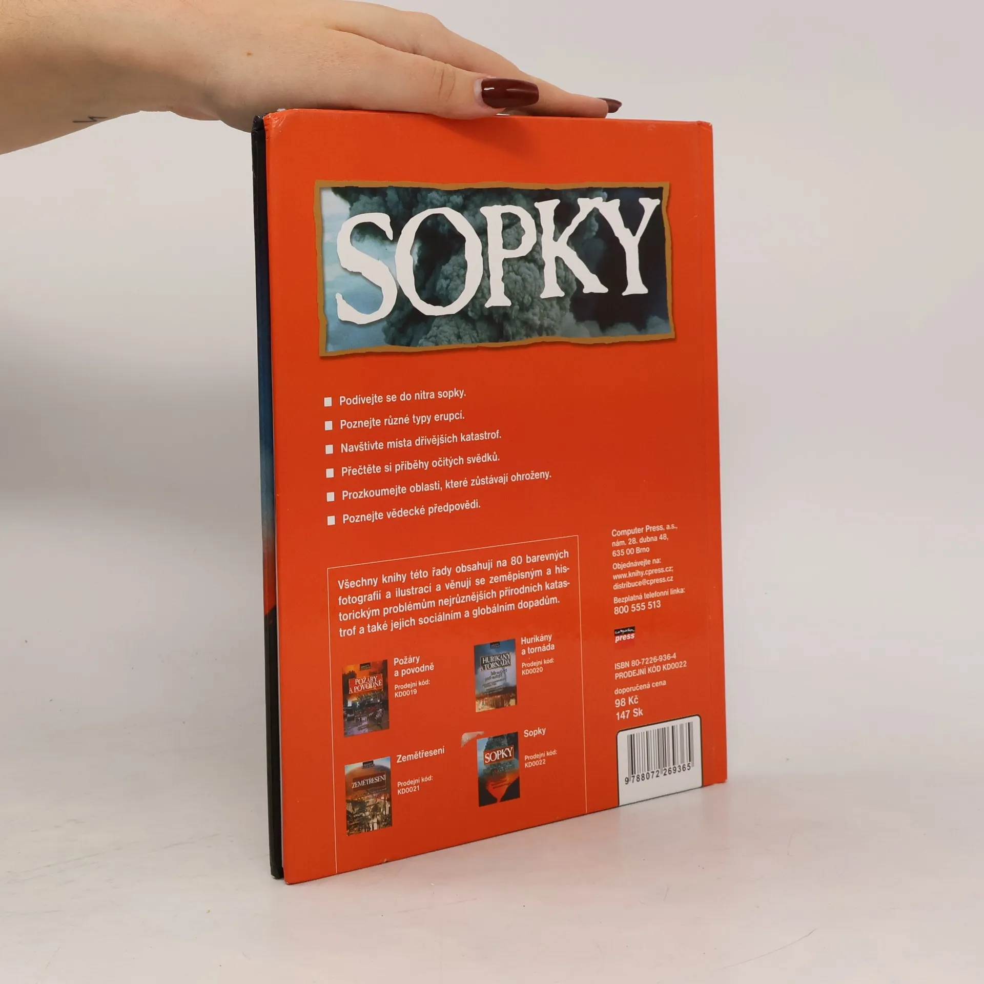 Další titul z miniedice Přírodní katastrofy je věnován problematice sopečné činnosti. Co skrývá nitro sopek, jaké jsou typy erupcí, historie některých katastrofických událostí, ohrožené oblasti a vědecké předpovědi sopečné aktivity. Výkladový text je doprovázem četnými fotografiemi a kresbami.
