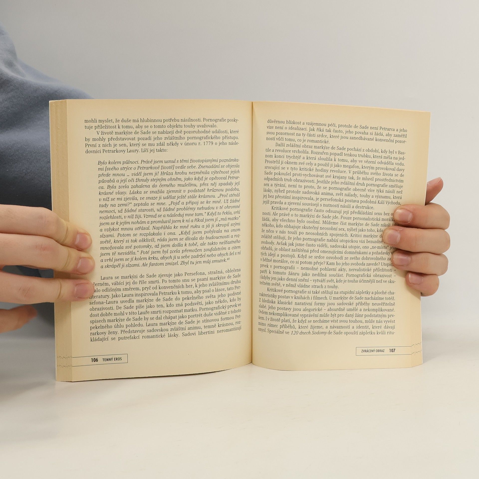 Kontroverzní spisy markýze de Sade jsou mnohými vnímány jako monotónní, nudné, perverzní, pornografické fantazie. Lze je však chápat i jiným způsobem. Známý autor T. Moore se zamýšlí nad hlavními tématy „sadeovské“ literatury jako nad mytologií, která neobvyklým způsobem odráží temné stránky vztahů každého z nás. Jde především o témata moci a bezmoci, jež přicházejí ke slovu nejen v intimních vztazích, ale i v tak obyčejných situacích, jako jsou např. profesní vztahy nebo jízda po dálnici. V předmluvě, kterou ke knize napsal známý švýcarský terapeut Guggenbühl-Craig, jenž se dlouhodobě zabýval tématy dětské agresivity, je kniha doporučována jako povinná četba všem, kteří profesionálně působí v oblasti pomáhajících profesí.