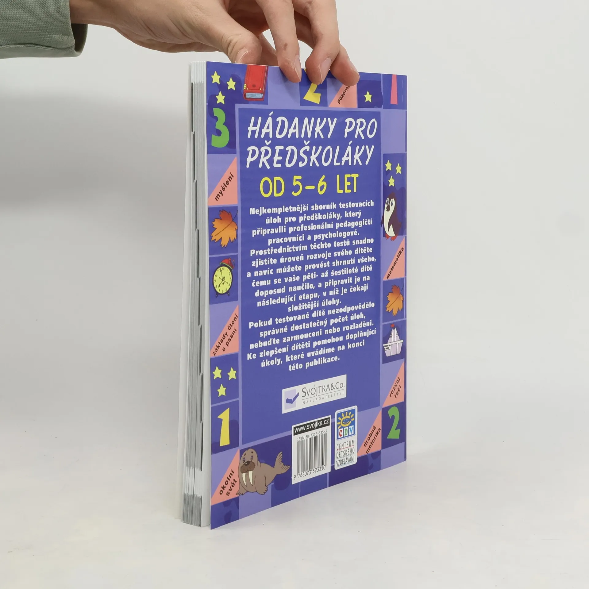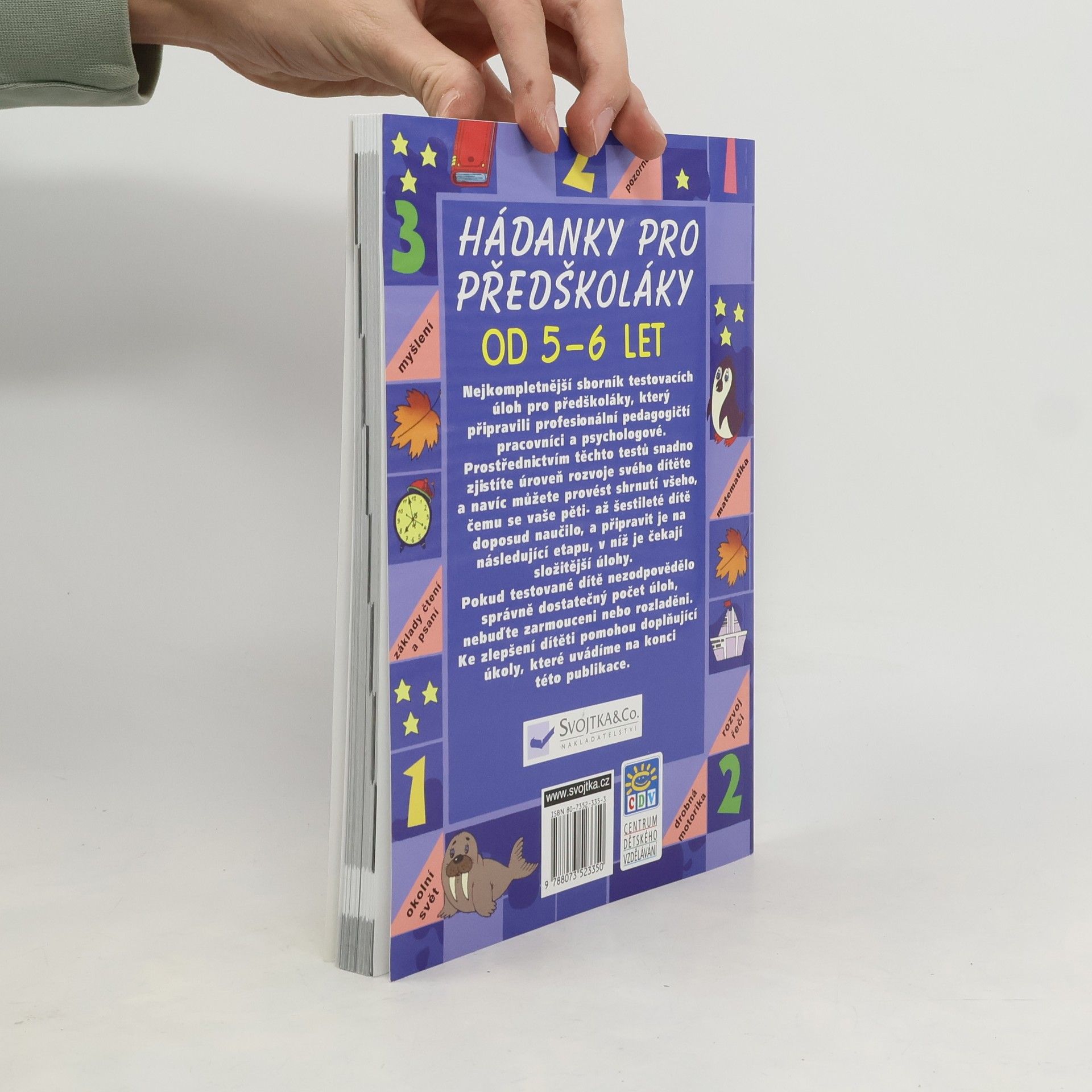 Nejkompletnější sborník testovacích úloh pro předškoláky, který připravili profesionální pedagogičtí pracovníci a psychologové. Prostřednictvím těchto testů snadno zjistíte úroveň rozvoje svého dítěte, a navíc můžete provést shrnutí všeho, čemu se vaše pěti- až šestileté dítě doposud naučilo, a připravit je na následující etapu, v níž je čekají složitější úlohy. Pokud testované dítě nezodpovědělo správně dostatečný počet úloh, nebuďte zarmouceni nebo rozladěni. Ke zlepšení dítěti pomohou doplňující úkoly, které uvádíme na konci této knihy.