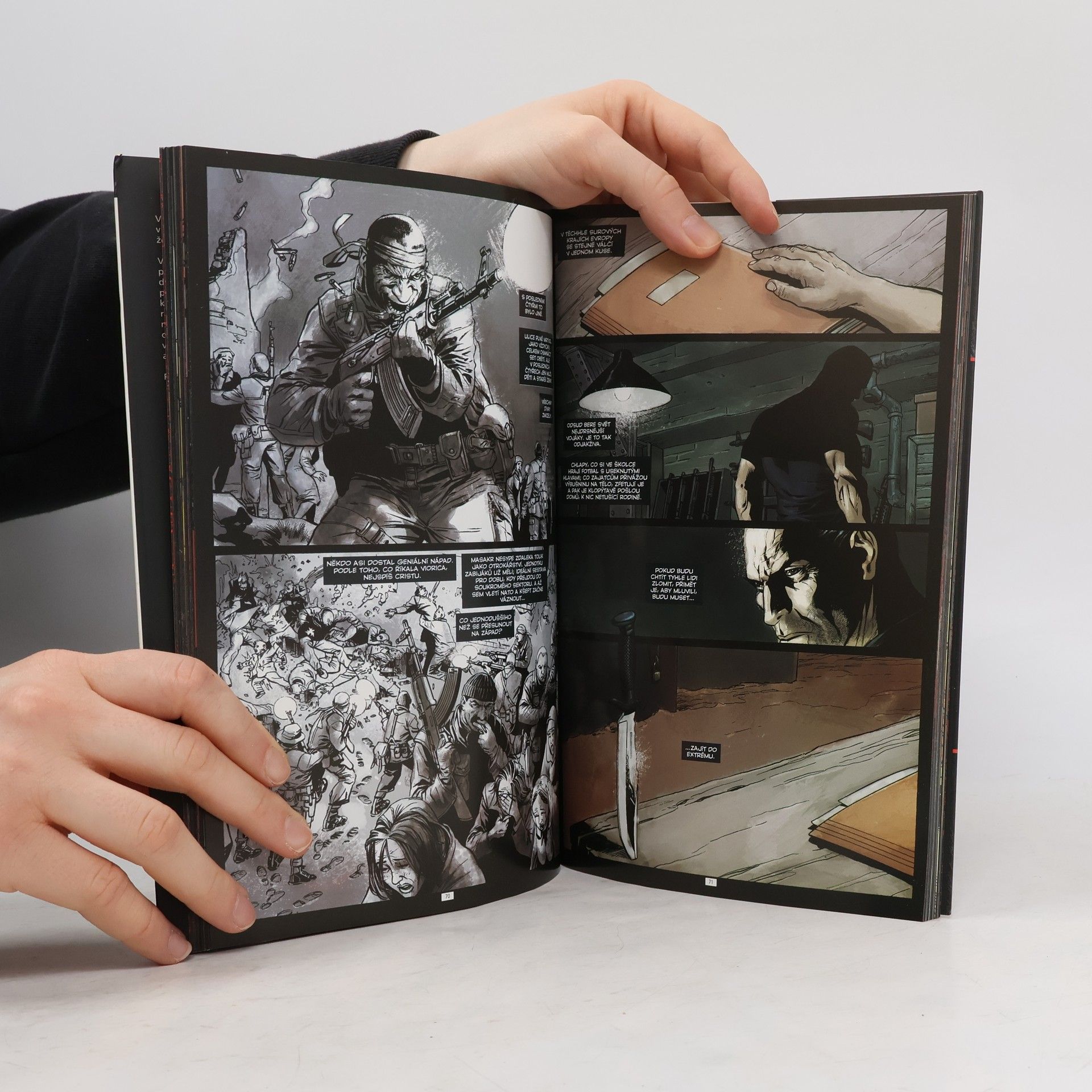 Všechno začalo jedné chladné, tmavé noci v Brooklynu, když se v dešti rozlehly zděšené ženské výkřiky… Viorica vypráví hrozné věci. A Frank Castle pozorně naslouchá. Takže se muži, kteří dívku trýznili, brzy ocitnou před hlavní jeho pušky. S podobným gangem, jako jsou otrokáři, se snad ještě nesetkal. Je to parta veteránů genocidy ve Východní Evropě, chladných, krutých mužů, kteří si myslí, že na obranu toho, co si přivlastnili, mohou použít všechny prostředky, a že je v oboru války a násilí nic nepřekvapí. Punisher je brzy vyvede z omylu…
