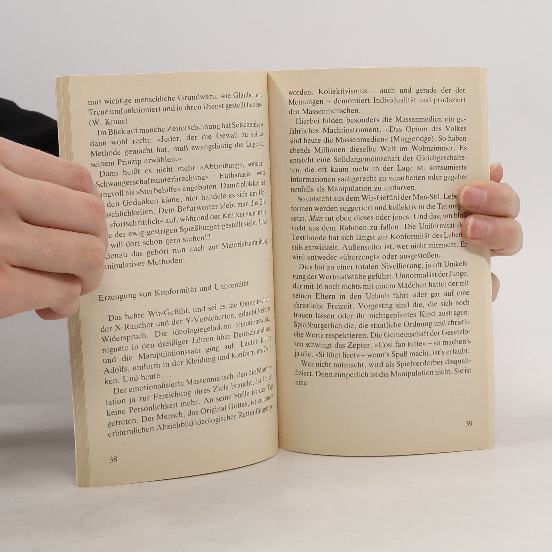 Peter Hahne schreibt darüber, wie Menschen durch die Macht der Meinugsmacher in den Medien manipuliert werden können. Er spricht von der »antennengesteuerten Freizeitdiktatur« Durch Bildschirm und Werbung. Manipulation wird mit Methode eingesetzt, um den »Massenmenschen« zu schaffen.Diesem Trend wird die Freiheit des Evangeliums gegenübergestellt. Sie haben die Wahl: Entweder können Sie Ihr Leben unter der Macht der Manipulation verbringen oder in der Freiheit des Evangeliums. Sie erfahren, wie das praktisch aussieht. - Ein Buch für wache Menschen, die nicht der Macht der Manipulation unterliegen wollen.