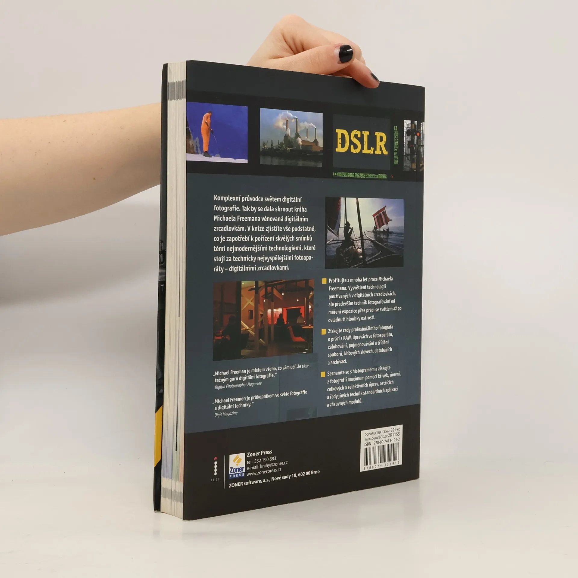 Kniha rozšiřuje znalosti o digitálních zrcadlovkách a je určena novým majitelům i těm, kteří zvažují jejich koupi. Uživatelé musí pochopit komplexní přístup k práci s těmito fotoaparáty, což zahrnuje nejen technické aspekty, jako je výměna objektivů, ale i osvojení si stylu práce, zejména při ukládání snímků ve formátu RAW. Publikace pokrývá klíčová témata, která by měl každý uživatel DSLR alespoň znát. Obsahuje základní informace o technologiích, funkcích a nastaveních fotoaparátů, expozici a jejím měření v různých světelných podmínkách, včetně úvodu do svícení a práce s blesky. Důraz je kladen na správu barev a zajištění jejich správné interpretace na monitorech a tiskárnách. Kniha se zaměřuje na zpracování RAW souborů a schopnosti různých aplikací pro úpravy a konverzi do standardních formátů. Dále se věnuje fotografování panoramat, spojování expozic pro větší hloubku ostrosti, snímání videa a archivaci dat. Autor, Michael Freeman, je mezinárodně uznávaný fotograf, jehož další publikace, jako Očima fotografa nebo Myslete jako fotograf, skvěle doplňují tuto knihu.