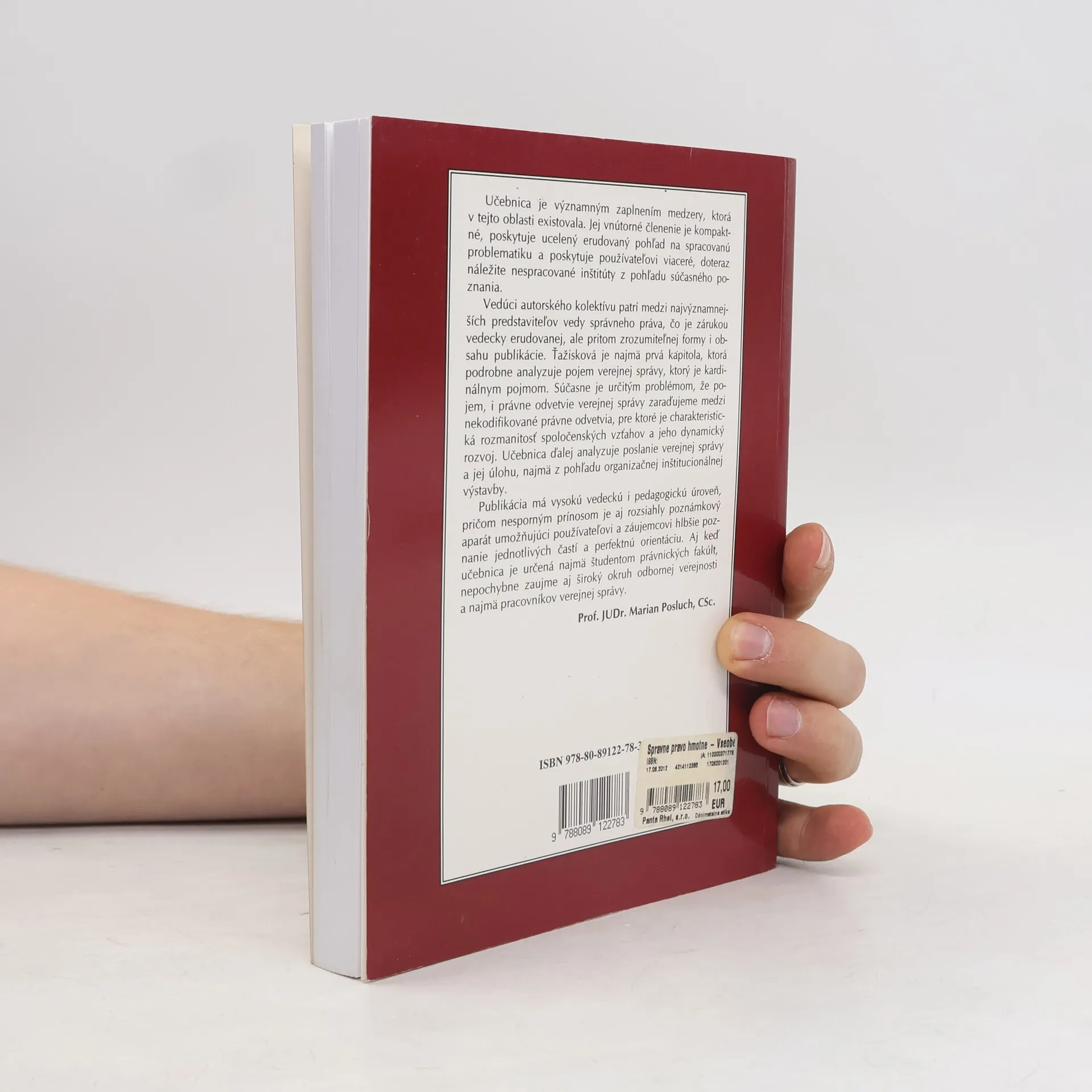 Učebnica je významným zaplnením medzery, ktorá v tejto oblasti existovala. Jej vnútorné členenie je kompaktné, poskytuje ucelený erudovaný pohľad na spracovanú problematiku a poskytuje používateľovi viaceré, doteraz náležite nespracované inštitúty z pohľadu súčasného poznania. Vedúci autorského kolektívu patrí medzi najvýznamnejších predstaviteľov vedy správneho práva, čo je zárukou vedecky erudovanej, ale pritom zrozumiteľnej formy i obsahu publikácie. Ťažisková je najmä prvá kapitola, ktorá podrobne analyzuje pojem verejnej správy, ktorý je kardinálnym pojmom. Súčasne je určitým problémom, že pojem, i právne odvetvie verejnej správy zaraďujeme medzi nekodifikované právne odvetvia, pre ktoré je charakteristická rozmanitosť spoločenských vzťahov a jeho dynamický rozvoj. Učebnica ďalej analyzuje poslanie verejnej správy a jej úlohu, najmä z pohľadu organizačnej inštitucionálnej výstavby. Publikácia má vysokú vedeckú i pedagogickú úroveň, pričom nesporným prínosom je aj rozsiahly poznámkový aparát umožňujúci používateľovi a záujemcovi hlbšie poznanie jednotlivých častí a perfektnú orientáciu. Aj keď učebnica je určená najmä študentom právnických fakúlt, nepochybne zaujme aj široký okruh odbornej verejnosti a najmä pracovníkov verejnej správy.