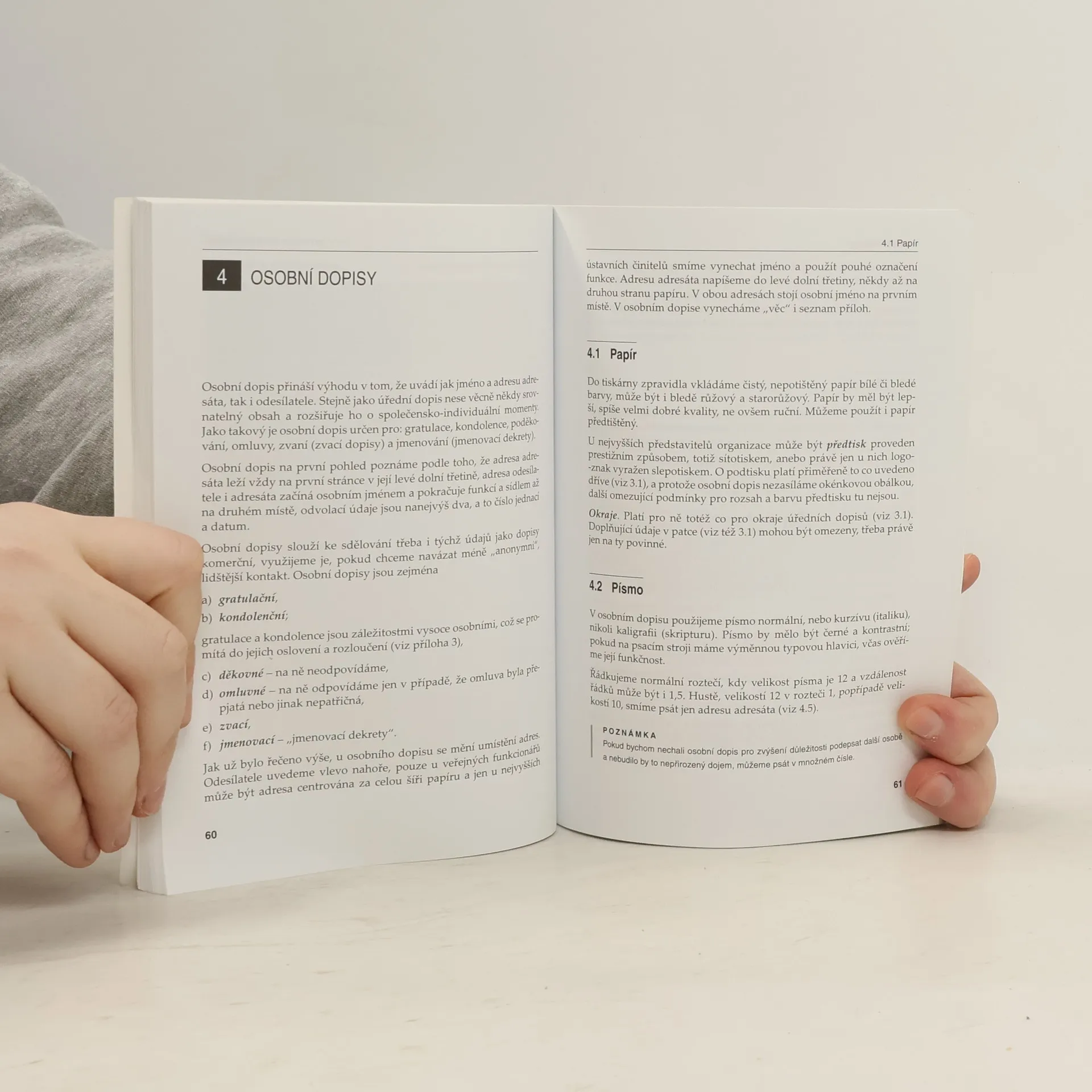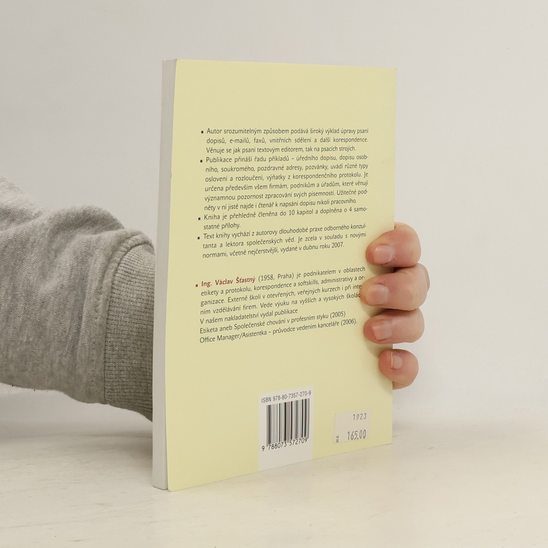 Autor srozumitelným způsobem podává široký výklad úpravy psaní dopisů, e-mailů, faxů, vnitřních sdělení a další korespondence. Věnuje se jak psaní textovým editorem, tak na psacích strojích. Publikace přináší řadu příkladů - úředního dopisu, dopisu osobního, soukromého, pozdravné adresy, pozvánky, uvádí různé typy oslovení a rozloučení, výňatky z korespondenčního protokolu.