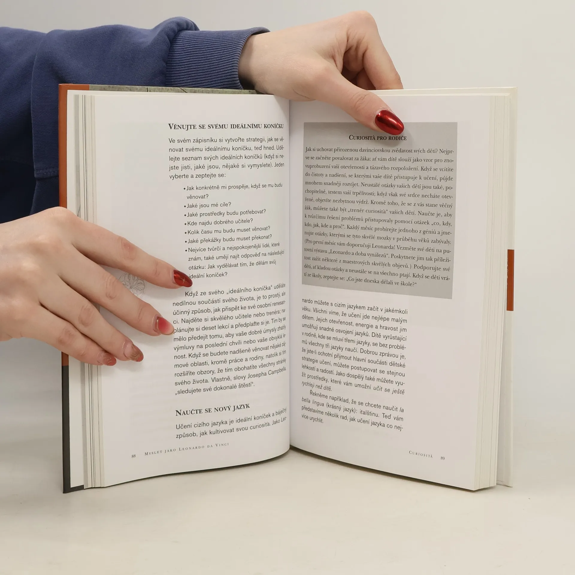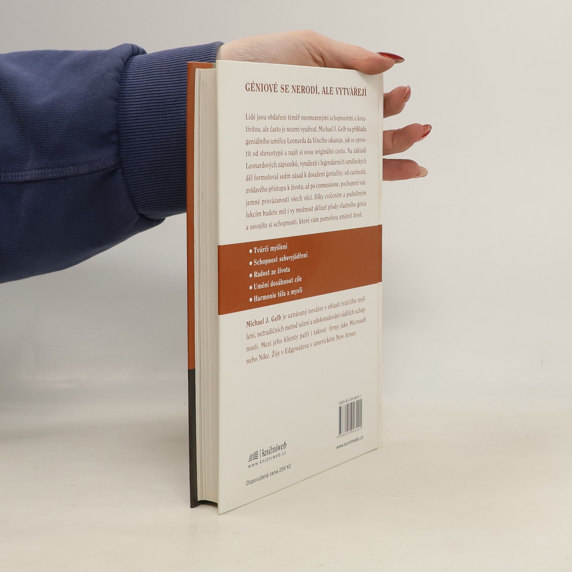 Géniové se nerodí, ale vytvářejí. Lidé jsou obdařeni téměř neomezenými schopnostmi a kreativitou, ale často je neumí využívat. Michael J. Gelb na příkladu geniálního umělce Leonarda da Vinciho ukazuje, jak se oprostit od stereotypů a najít si svou originální cestu. Na základě Leonardových zápisníků, vynálezů i legendárních uměleckých děl formuloval sedm zásad k dosažení geniality: od curiosita, zvídavého přístupu k životu, až po connessione, pochopení vzájemné provázanosti všech věcí. Díky cvičením a podnětným lekcím budete mít i vy možnost sklízet plody vlastního génia a osvojíte si schopnosti, které vám pomohou změnit život. · Tvůrčí myšlení · Schopnost sebevyjádření · Radost ze života · Umění dosáhnout cíle · Harmonie těla a mysli. ... celý text