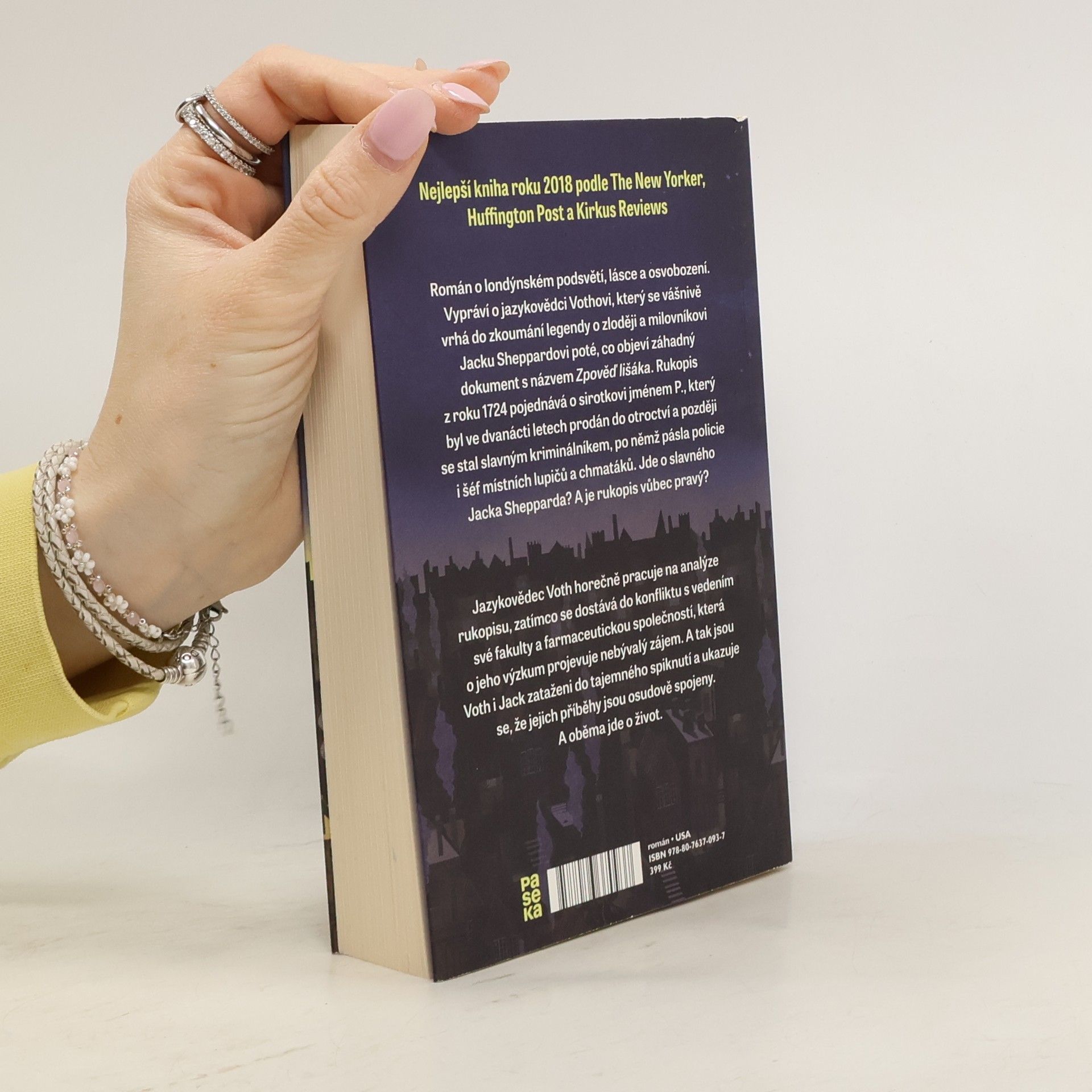 Lechtivý historický román o lásce, genderu a osvobození. Odehrává se ve dvou časových obdobích. První vypráví o jazykovědci doktoru Vothovi, který se v naší současnosti snaží vzpamatovat z rozchodu a obsesivně se vrhá do zkoumání života Jacka Shepparda, legendárního zloděje a milovníka z osmnáctého století. Nikdo totiž nezná skutečný Jackův příběh, jeho výpověď ani přiznání se nikdy nenašly. Tedy dokud doktor Voth neobjeví záhadný dokument s názvem Zpověď lišáka. Jde o rukopis z roku 1724 o sirotkovi jménem P., který byl ve dvanácti letech prodán do otroctví a později se z něj stal odvážný zloděj a bojovník za práva „monster“ – vlčích lidí či trpaslíků. Jeho protivníkem přitom není jen policie, ale i šéf všech londýnských zlodějíčků, který „monstra“ loví. Tak se P. postupně stává Jackem Sheppardem, jedním z nejznámějších a nejhledanějších zlodějů v historii. Doktor Voth horečně pracuje ve dne v noci na analýze rukopisu. Ale není jediný, kdo chce Jackův příběh a jeho pravou identitu odhalit. A tak jsou Jack i doktor Voth zataženi do případu tajemného spiknutí a ukazuje se, že jejich osudy jsou spojené – a oba je zachrání jen zázrak.