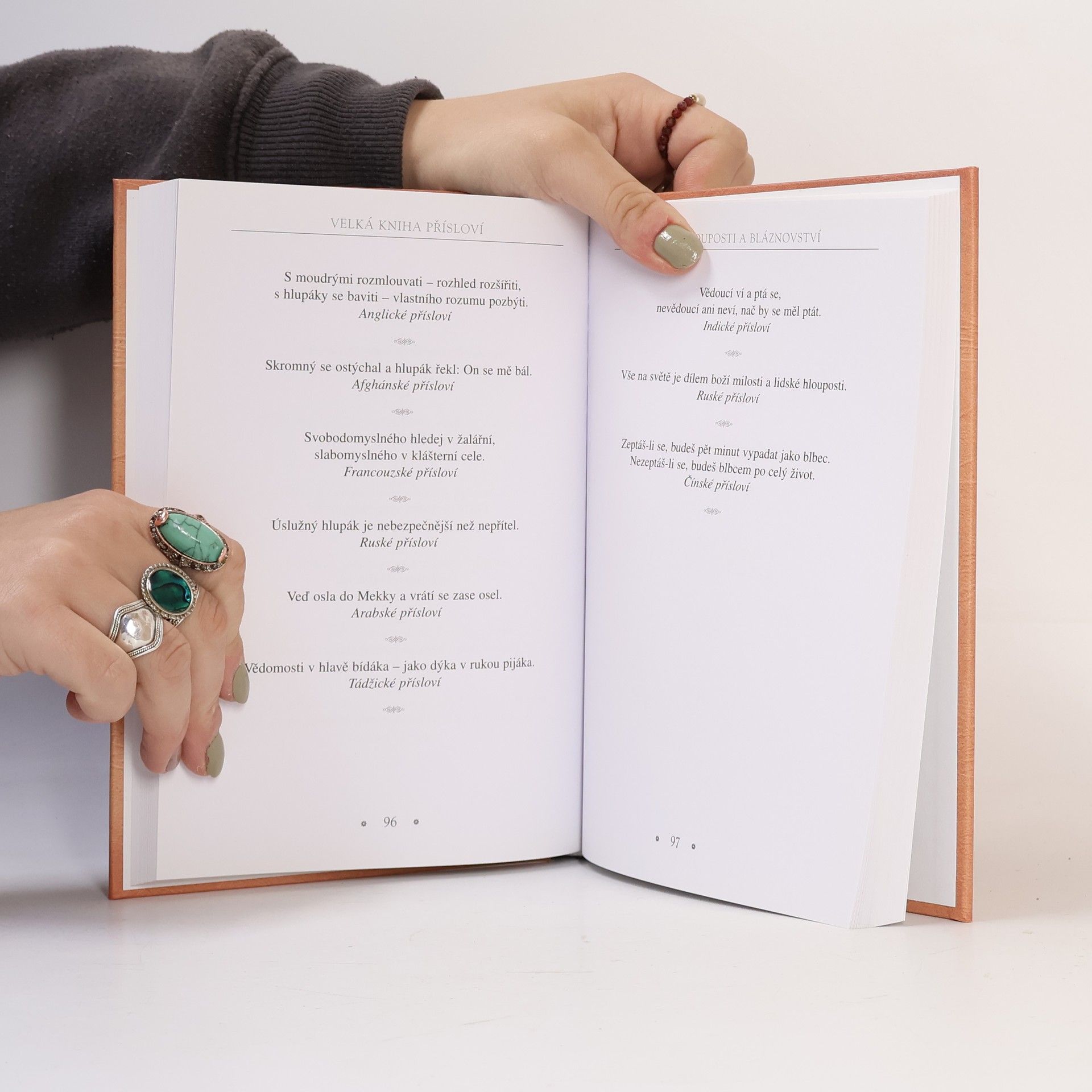 Velká kniha přísloví nabízí čtenářům více než 1200 abecedně řazených a tematicky rozdělených přísloví národů celého světa, v nichž lze nalézt radu, útěchu i poučení.