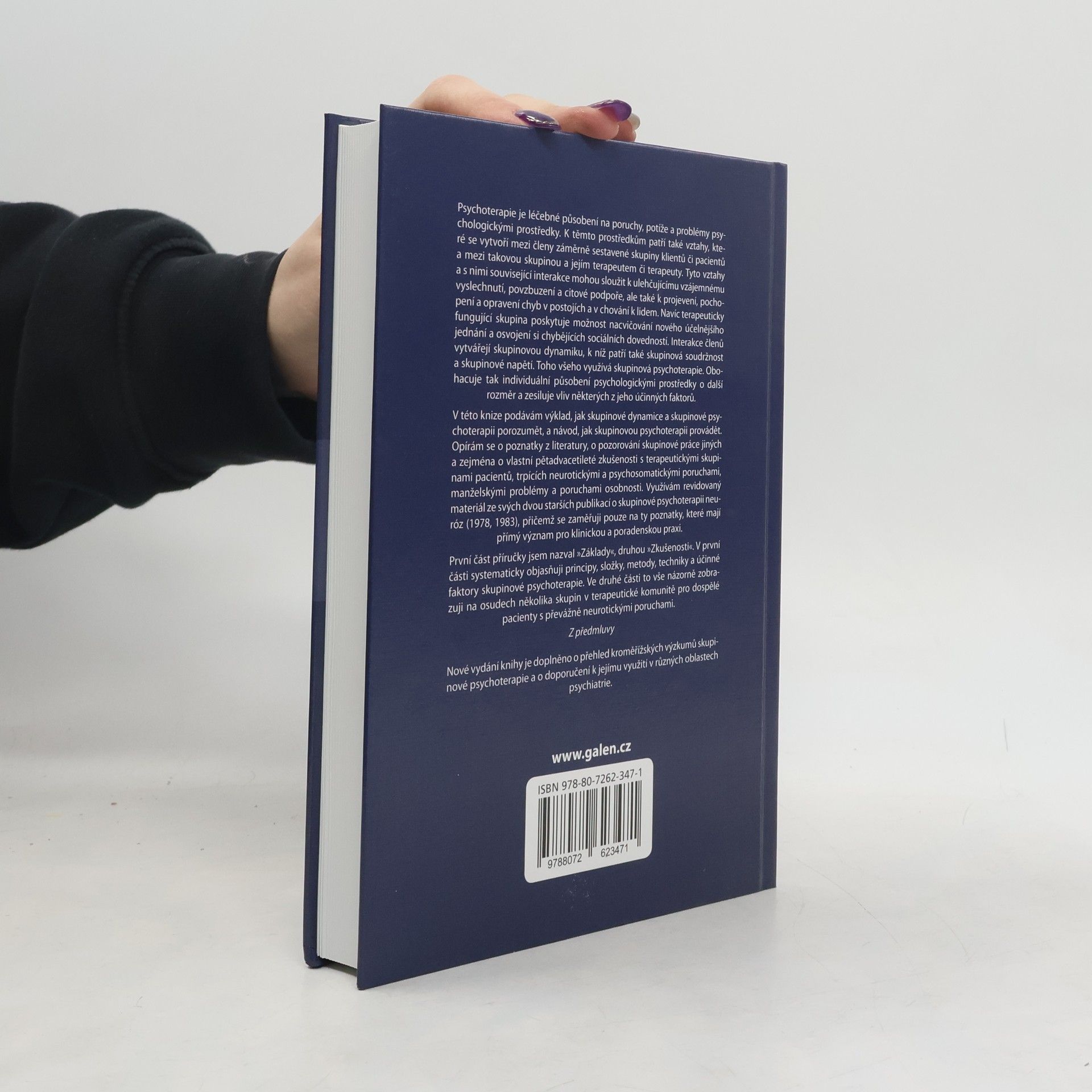 Psychoterapie se zaměřuje na léčbu psychologických poruch a problémů prostřednictvím vztahů mezi členy terapeutické skupiny a jejími terapeuty. Tyto vztahy umožňují vzájemné vyslechnutí, povzbuzení a citovou podporu, ale také pomáhají odhalit a napravit chyby v postojích a chování. Skupinová dynamika, která zahrnuje soudržnost a napětí, je klíčová pro terapeutický proces, jelikož poskytuje prostor pro nácvik nového jednání a osvojení sociálních dovedností. Kniha nabízí výklad skupinové dynamiky a psychoterapie a návod na jejich praktické provádění, založený na literárních poznatcích, pozorováních a autorových pětadvacetiletých zkušenostech s terapeutickými skupinami pacientů trpících neurotickými a psychosomatickými poruchami. První část se věnuje základům, jako jsou principy, metody a účinné faktory skupinové psychoterapie, zatímco druhá část ilustruje tyto koncepty na příkladech z terapeutické komunity pro dospělé pacienty s neurotickými poruchami. Nové vydání obsahuje také přehled výzkumů skupinové psychoterapie a doporučení pro její využití v různých oblastech psychiatrie.