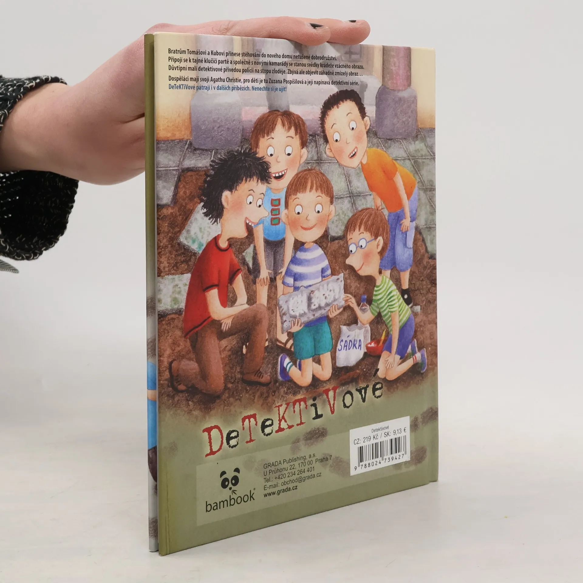 Bratrům Tomášovi a Kubovi přinese stěhování do nového domu netušené dobrodružství. Připojí se k tajné klučičí partě a společně s novými kamarády se stanou svědky krádeže vzácného obrazu. Důvtipní malí detektivové přivedou policii na stopu zloděje. Zbývá ale objevit záhadně zmizelý obraz... Dospěláci mají svoji Agathu Christie, pro děti je tu Zuzana Pospíšilová a její dětská detektivka. Malí čtenáři se mohou těšit nejen na napínavý text a krásné ilustrace Markéty Vydrové, ale také na tajný vzkaz a doprovodné detektivní otázky. DeTeKTiVové budou brzy pátrat v dalších, nových knížkách.