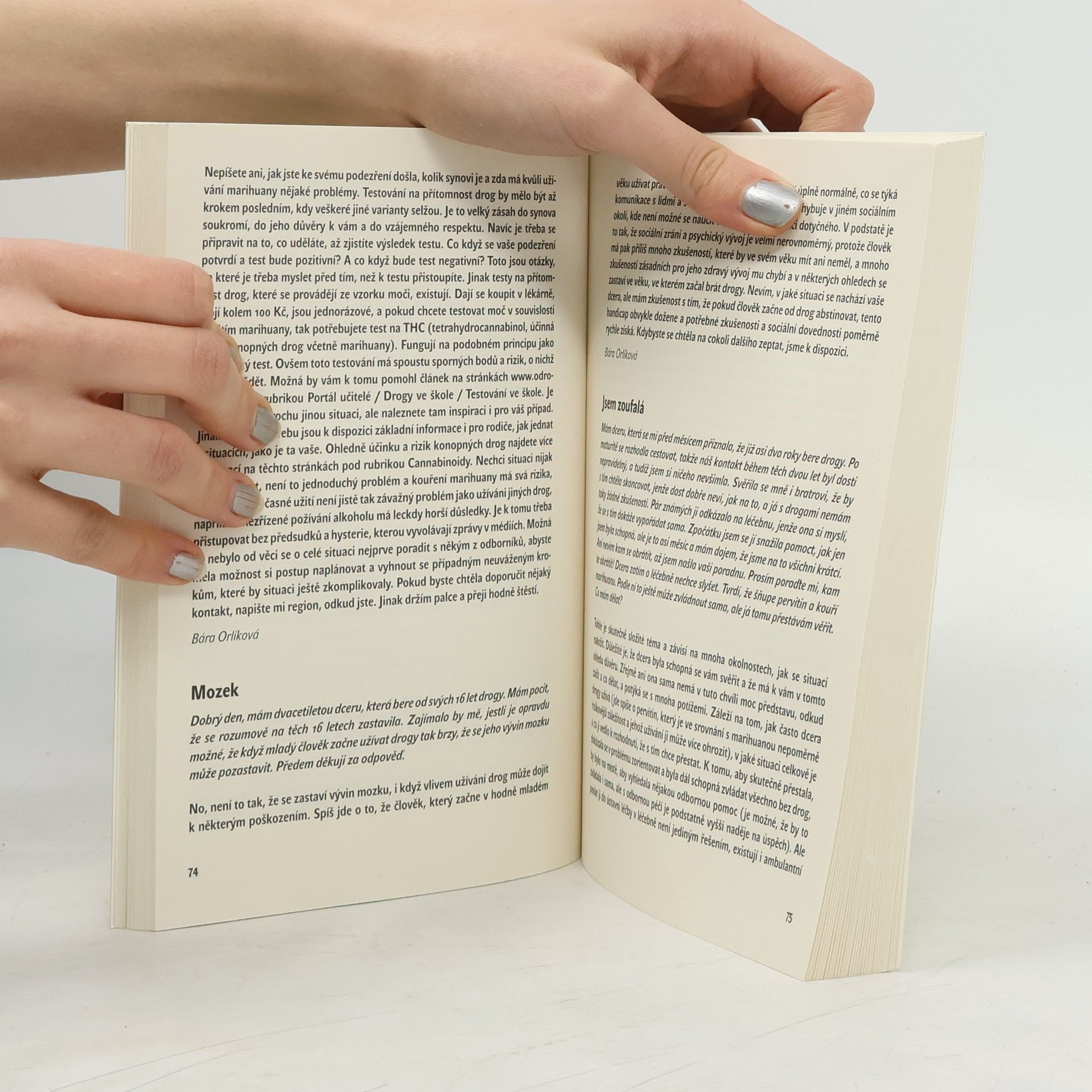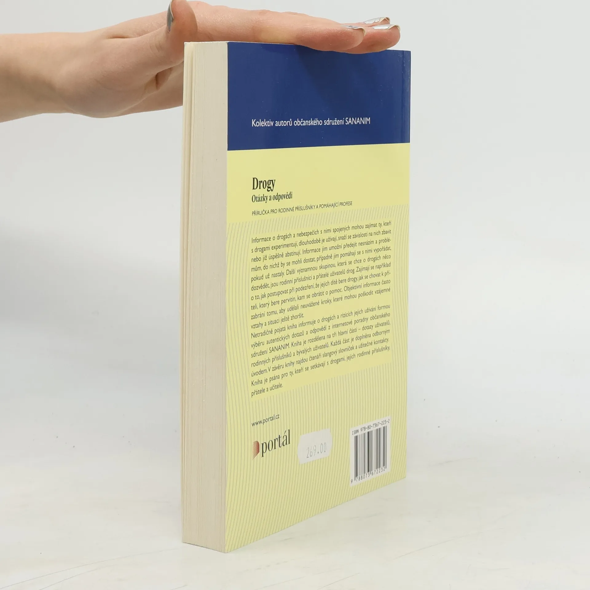 Příručka pro rodinné příslušníky a pomáhající profese Informace o drogách a nebezpečích s nimi spojených mohou zajímat ty, kteří s drogami experimentují, dlouhodobě je užívají, snaží se závislosti na nich zbavit nebo již úspěšně abstinují. Informace jim umožní předejít nesnázím a problémům, do nichž by se mohli dostat, případně jim pomáhají se s nimi vypořádat, pokud už nastaly. Další významnou skupinou, která se chce o drogách něco dozvědět, jsou rodinní příslušníci a přátelé uživatelů drog. Zajímají se například o to, jak postupovat při podezření, že jejich dítě bere drogy, jak se chovat k příteli, který bere pervitin, kam se obrátit o pomoc. Objektivní informace často zabrání tomu, aby udělali neuvážené kroky, které mohou poškodit vzájemné vztahy a situaci ještě zhoršit. Netradičně pojatá kniha informuje o drogách a rizicích jejich užívání formou výběru autentických dotazů a odpovědí z internetové poradny občanského sdružení SANANIM. Kniha je rozdělena na tři hlavní části - dotazy uživatelů, rodinných příslušníků a bývalých uživatelů. Každá část je doplněna odborným úvodem. V závěru knihy najdou čtenáři slangový slovníček a užitečné kontakty