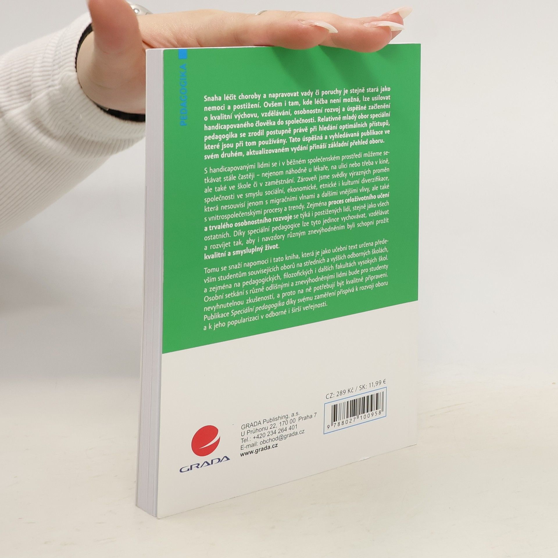 Snaha léčit choroby a napravovat vady či poruchy je stejně stará jako nemoci a postižení. Ovšem i tam, kde léčba není možná, lze usilovat o kvalitní výchovu, vzdělávání, osobnostní rozvoj a začlenění handicapovaného člověka do společnosti. Tato úspěšná publikace přináší základní přehled o oboru speciální pedagogika.