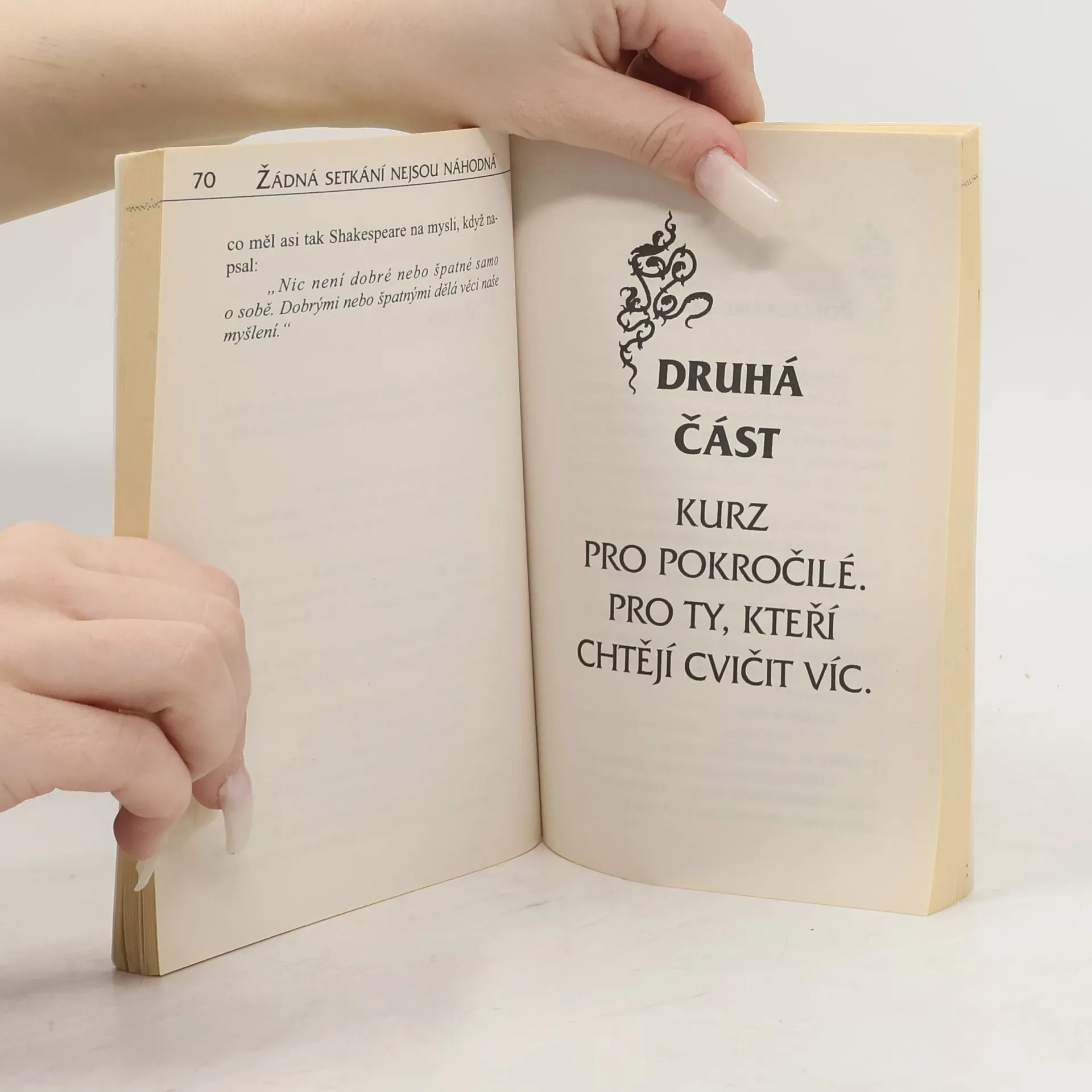 Tato kniha ukazuje rychlou a jednoduchou možnost, jak změnit naše životy a životy těch okolo nás prostřednictvím způsobu, jakým řešíme běžná denní setkání. Předkládá série jednoduchých nápadů, pohledů a cvičení, která pomohou čtenářům vidět opravdově sami sebe a druhé a jednat v souladu s tím. Dává reálnou naději na utvoření lepších mezilidských vztahů.