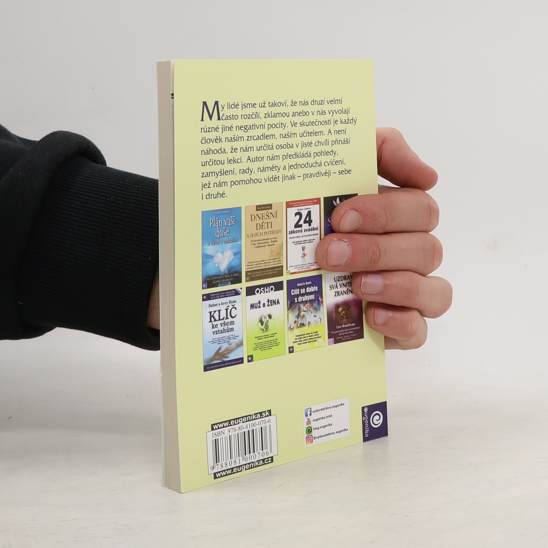 Tato kniha ukazuje rychlou a jednoduchou možnost, jak změnit naše životy a životy těch okolo nás prostřednictvím způsobu, jakým řešíme běžná denní setkání. Předkládá série jednoduchých nápadů, pohledů a cvičení, která pomohou čtenářům vidět opravdově sami sebe a druhé a jednat v souladu s tím. Dává reálnou naději na utvoření lepších mezilidských vztahů.
