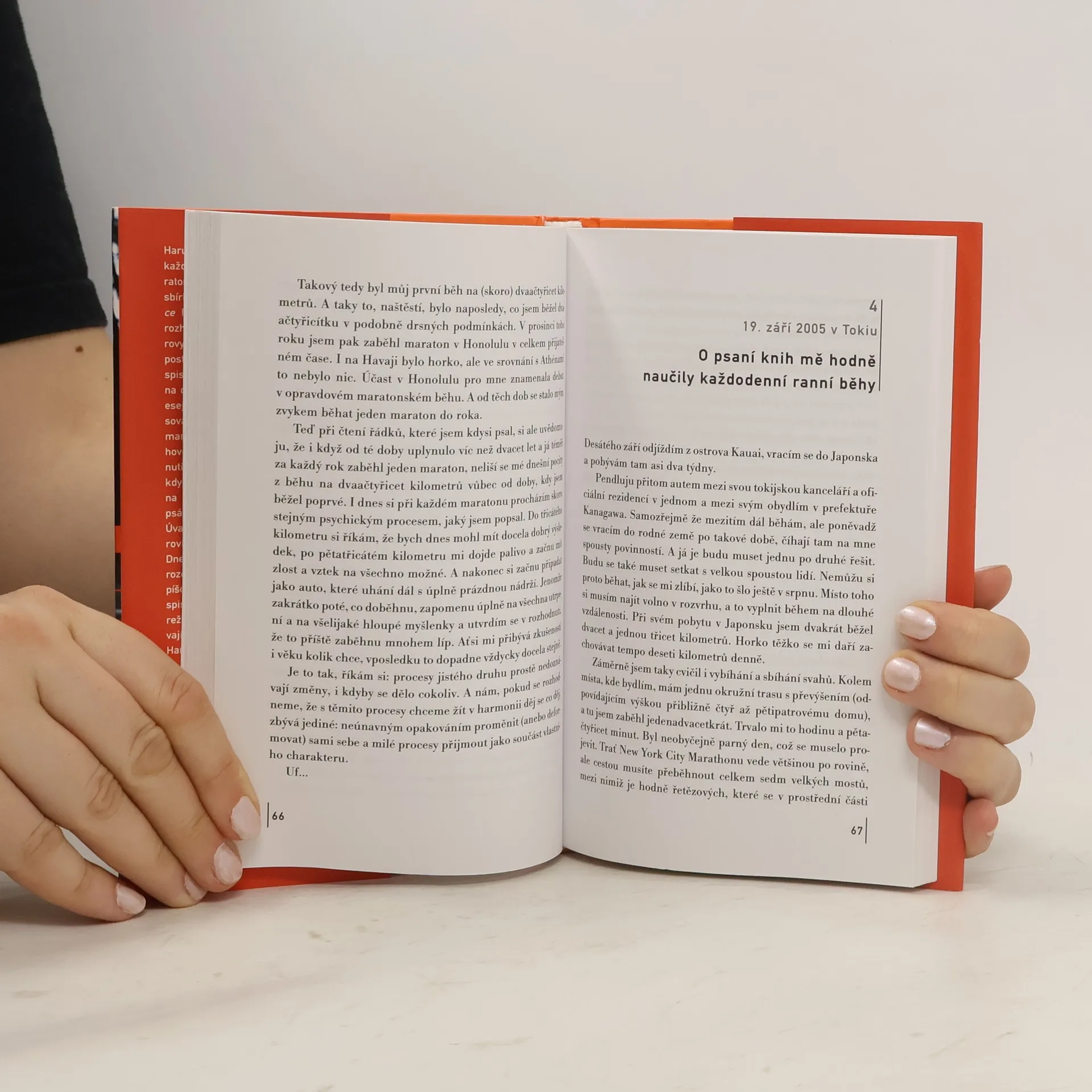 Murakami běhá 25 let – každý den deset kilometrů, každý rok maraton. Titul knihy je variací na povídkovou sbírku O čem mluvím, když mluvím o lásce Raymonda Carvera. Kniha „memoárů“ rozhodně zaujme tři typy fanoušků: autorovy skalní příznivce, pro které je kultovní postavou, pak hledače receptu, jak se stát spisovatelem, a nakonec, jak jinak, běžce na dlouhou trať. V knize je jednak soubor esejů o běhu na dlouhé tratě, jednak spisovatelův „diář“ čtyřměsíční přípravy na maraton v New Yorku. Hovoří o fyzické i psychické bolesti, o stárnutí, o tématech, která se mu honí hlavou. Jsou tu úvahy o spisovatelství jako takovém: doba už nepřeje romantickým týpkům, co nasávají nebo berou drogy a píšou skvěle – doba přeje globálním spisovatelům-manažerům. Ostatně přísný režim a skvělá kondice bývají totožné u byznysmenů i u spisovatelů.