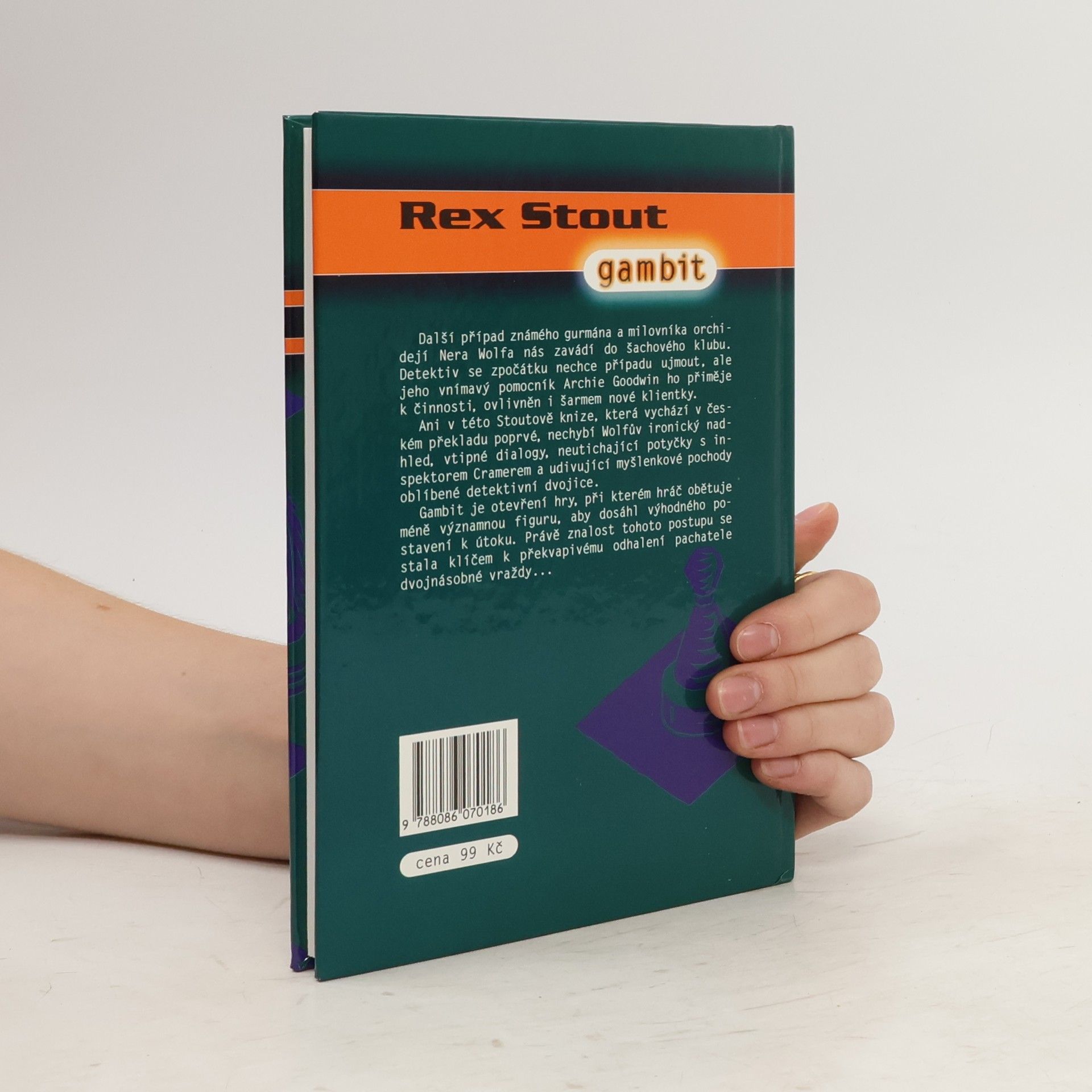 Další případ známého gurmána a milovníka orchidejí Nera Wolfa nás zavádí do šachového klubu. Detektiv se zpočátku nechce případu ujmout, ale jeho vnímavý pomocník Archie Goodwin ho přiměje k činnosti, ovlivněn i šarmem nové klientky. Gambit je otevření hry, při kterém hráč obětuje méně významnou figuru, aby dosáhl výhodného postavení k útoku. Právě znalost tohoto postupu se stala klíčem k překvapivému odhalení pachatele dvojnásobné vraždy...