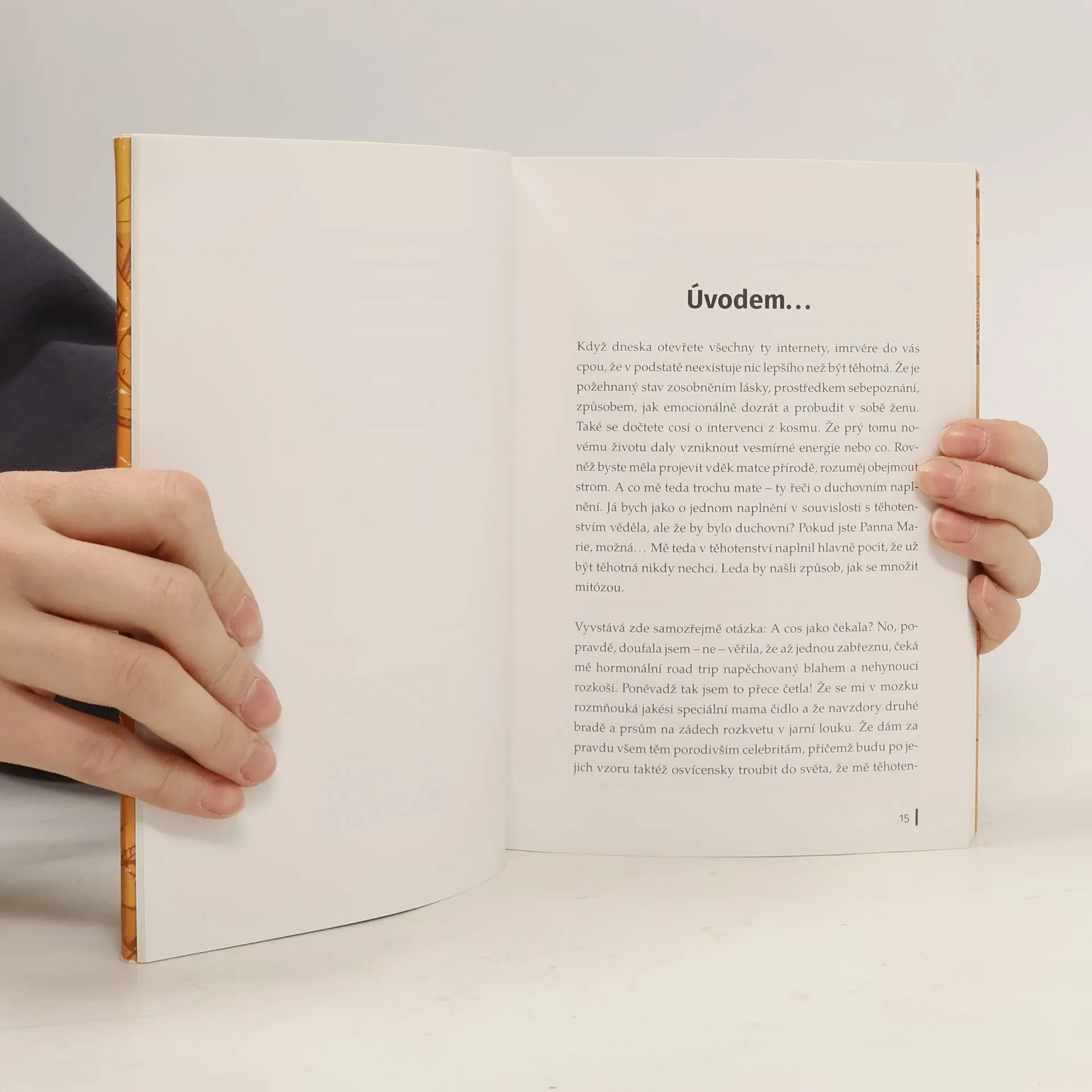 Jak přežít těhotenství? Fakt nevim! Dula vám jistě poradí, ať se soustředíte na pozitivní myšlení, roztomilé těhulky z klubu „šťastně až do smrti“ nasadí rozpačitý výraz a počastují vás přednáškou na téma zázrak početí, a gynekolog? Gynekolog tasí z rukávu letáček na lekci těhotenské jógy, poněvadž koho by nepovzbudilo exhibovat na podložce mezi jogíny s kýblem u huby. Něco vám prozradím. Pokud jste to nevěděli nebo vám to snad zatajili. Ne všechny rodičky frčí na růžové vlně osudového prozření, že právě těhotenství je to nejkrásnější, co může ženu v životě potkat. Zřejmě jediný způsob, jak s tím vším bojovat, je humor a vzájemné sdílení. Nechť se z pobliónu konečně rozezní žalozpěv ženy coby oběti reprodukce!