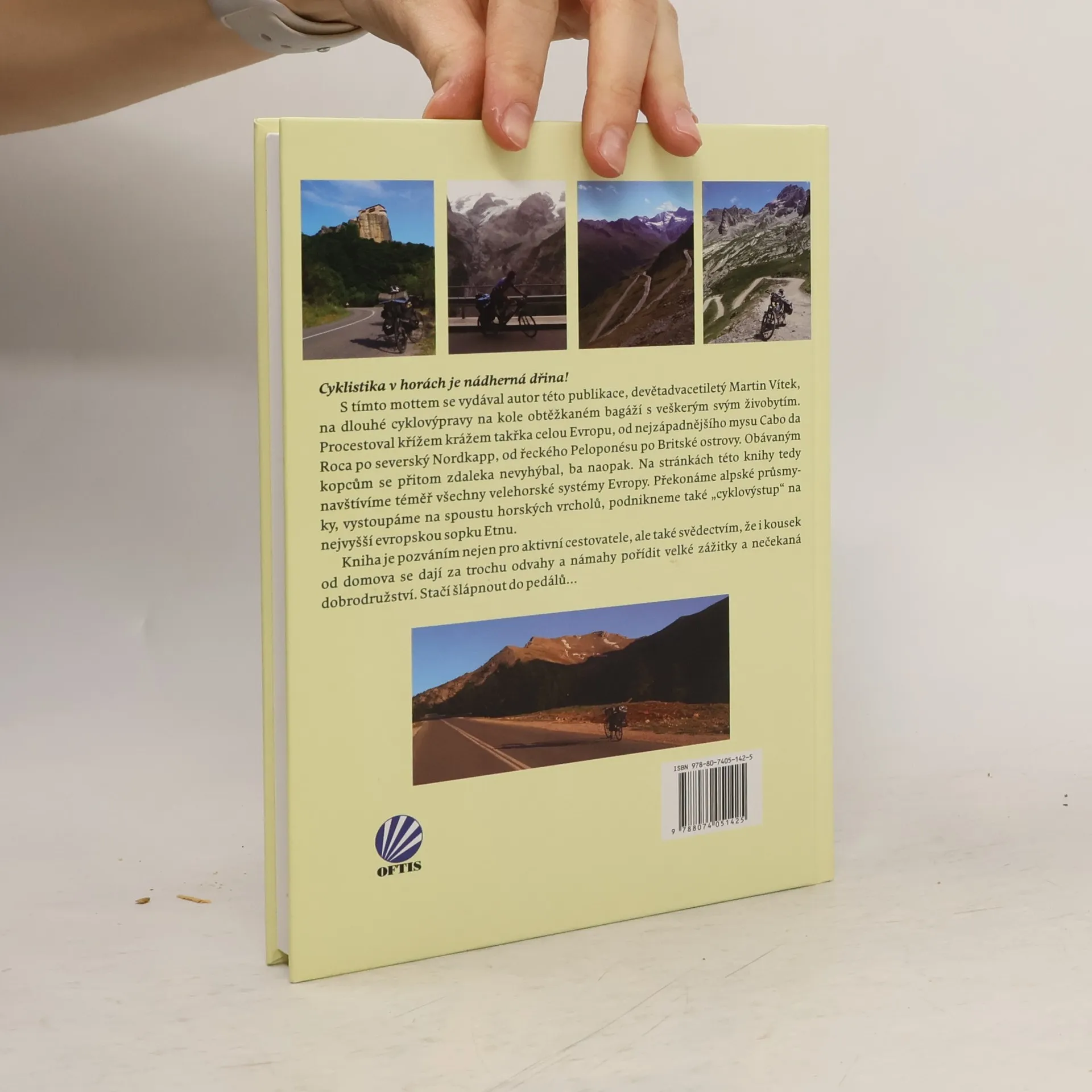 Cyklistika v horách je nádherná dřina!S tímto mottem se vydával autor této publikace, devětadvacetiletý Martin Vítek, na dlouhé cyklovýpravy na kole obtěžkaném bagáží s veškerým svým živobytím. Procestoval křížem krážem takřka celou Evropu, od nejzápadnějšího mysu Cabo da Roca po severský Nordkapp, od řeckého Peloponésu po Britské ostrovy. Obávaným kopcům se přitom zdaleka nevyhýbal, ba naopak. Na stránkách této knihy tedy navštívíme téměř všechny velehorské systémy Evropy. Překonáme alpské průsmyky, vystoupáme na spoustu horských vrcholů, podnikneme také „cyklovýstup“ na nejvyšší evropskou sopku Etnu. Kniha je pozváním nejen pro aktivní cestovatele, ale také svědectvím, že i kousek od domova se dají za trochu odvahy a námahy pořídit velké zážitky a nečekaná dobrodružství. Stačí šlápnout do pedálů …