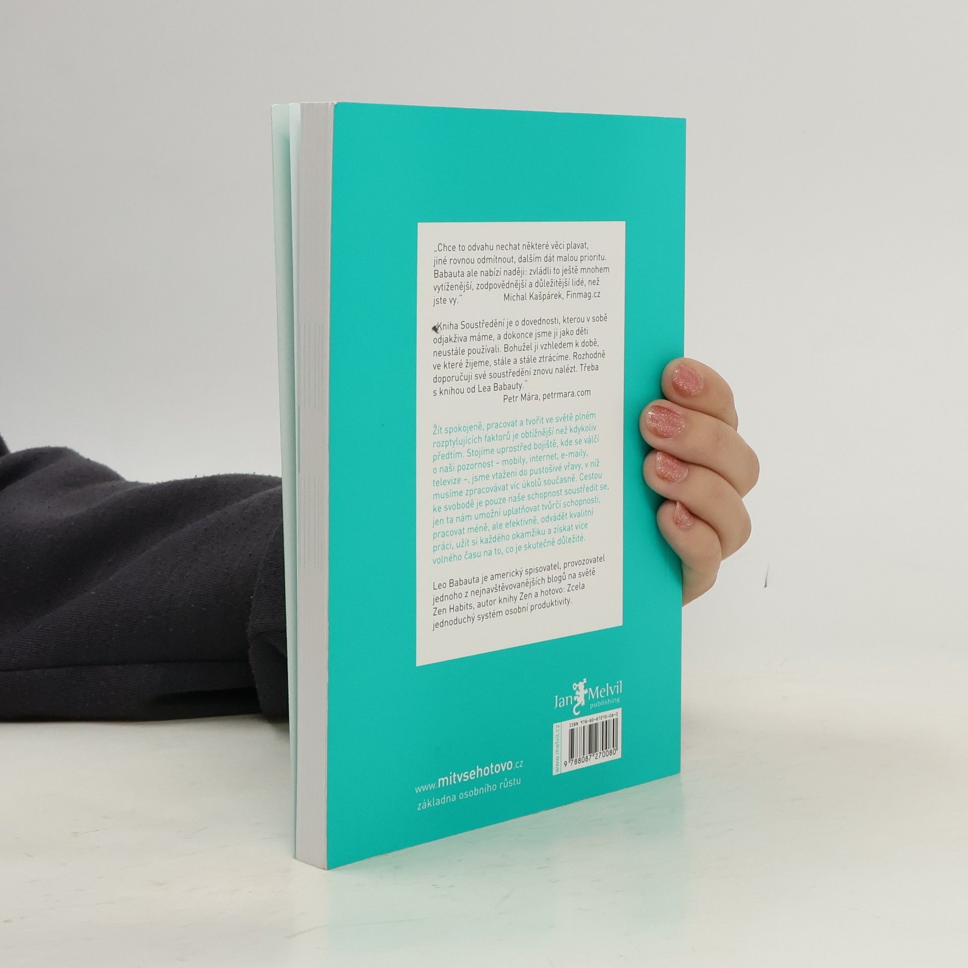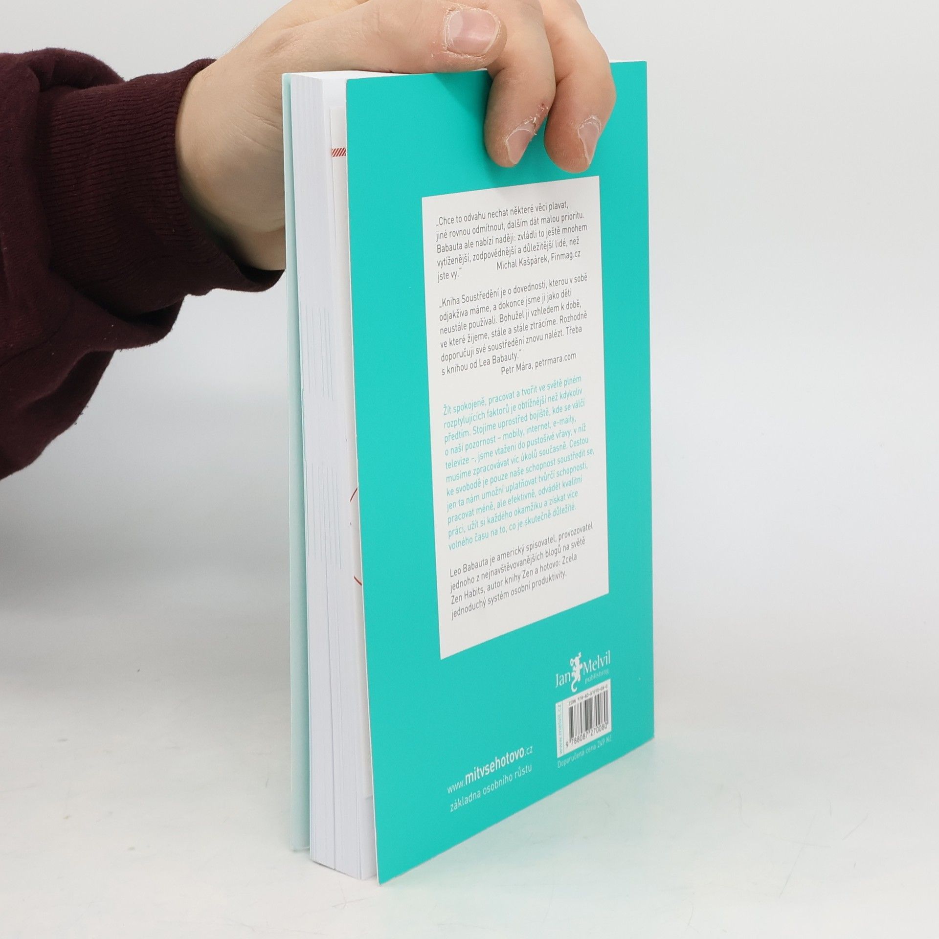 Ruku na srdce: dokážete se ještě vůbec soustředit jako za starých časů? Dokážete rozpoznat, co je pro vás opravdu důležité, a podle toho se rozhodnout o naplnění další minuty, hodiny, dne, roku vašeho života? Nebo jste tak závislí, nesoustředění a multitaskující jako velká část naší generace? Knížka pro všechny, kteří se jen stěží vzpamatovávají po zásahu kouzlem internetu, sociálních sítí a nepřetržité online dosažitelnosti. Další skvělá, praktická a inspirativní kniha Leo Babauty, jehož krédem je životní minimalismus. Naučte se znovu něco, co jste kdysi uměli od přírody: soustředit se a žít.