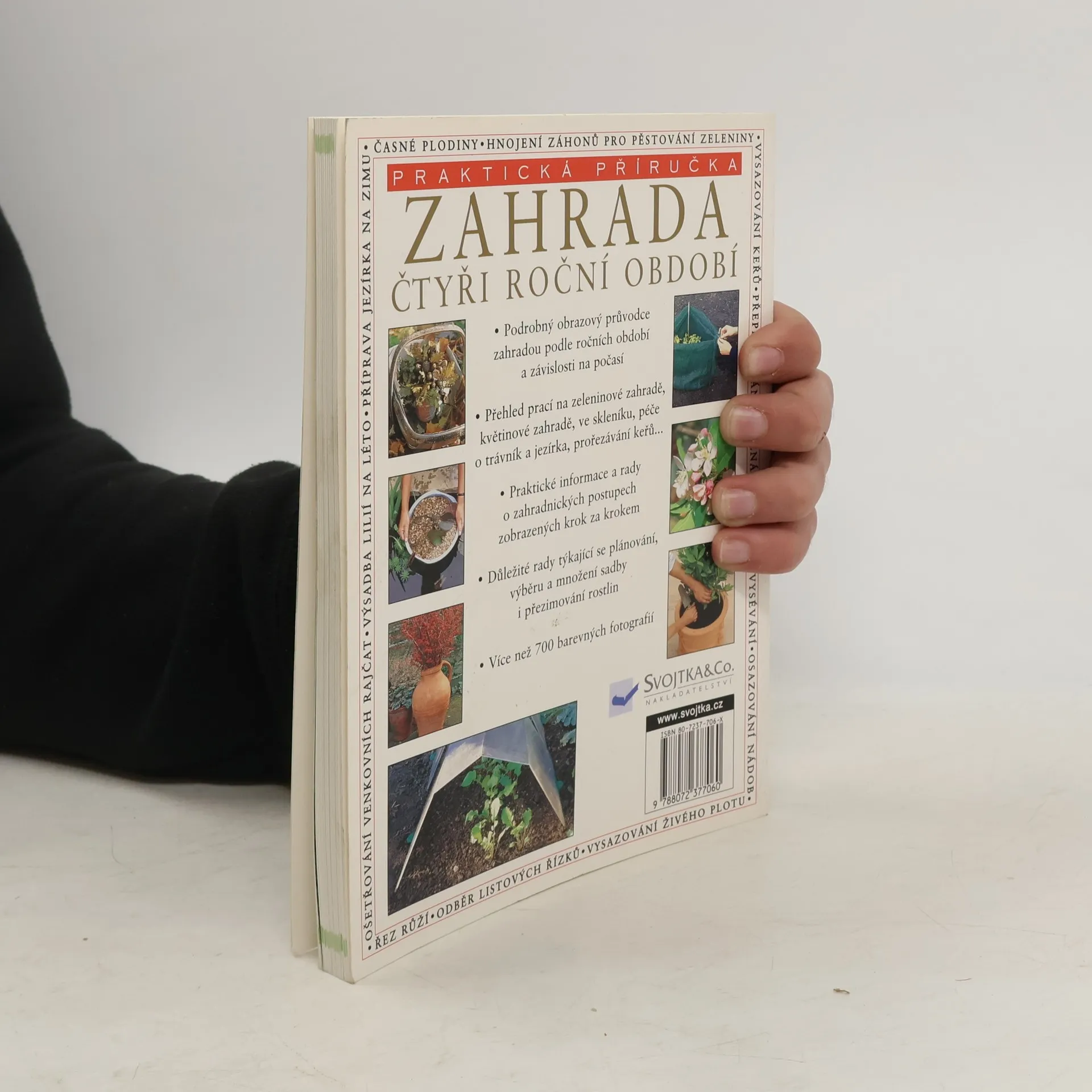 Praktická příručka. - Podrobný obrazový průvodce zahradou podle ročních období a závislosti na počasí - Přehled prací na zeleninové zahradě, květinové zahradě, ve skleníku, péče o trávník a jezírka, prořezávání keřů, vysazování živého plotu, odběr listových řízků, hnojení záhonů... - Praktické informace a rady o zahradnických postupech zobrazených krok za krokem - Důležité rady týkající se plánování, výběru a množení sadby i přezimování rostlin - Více než 700 barevných fotografií