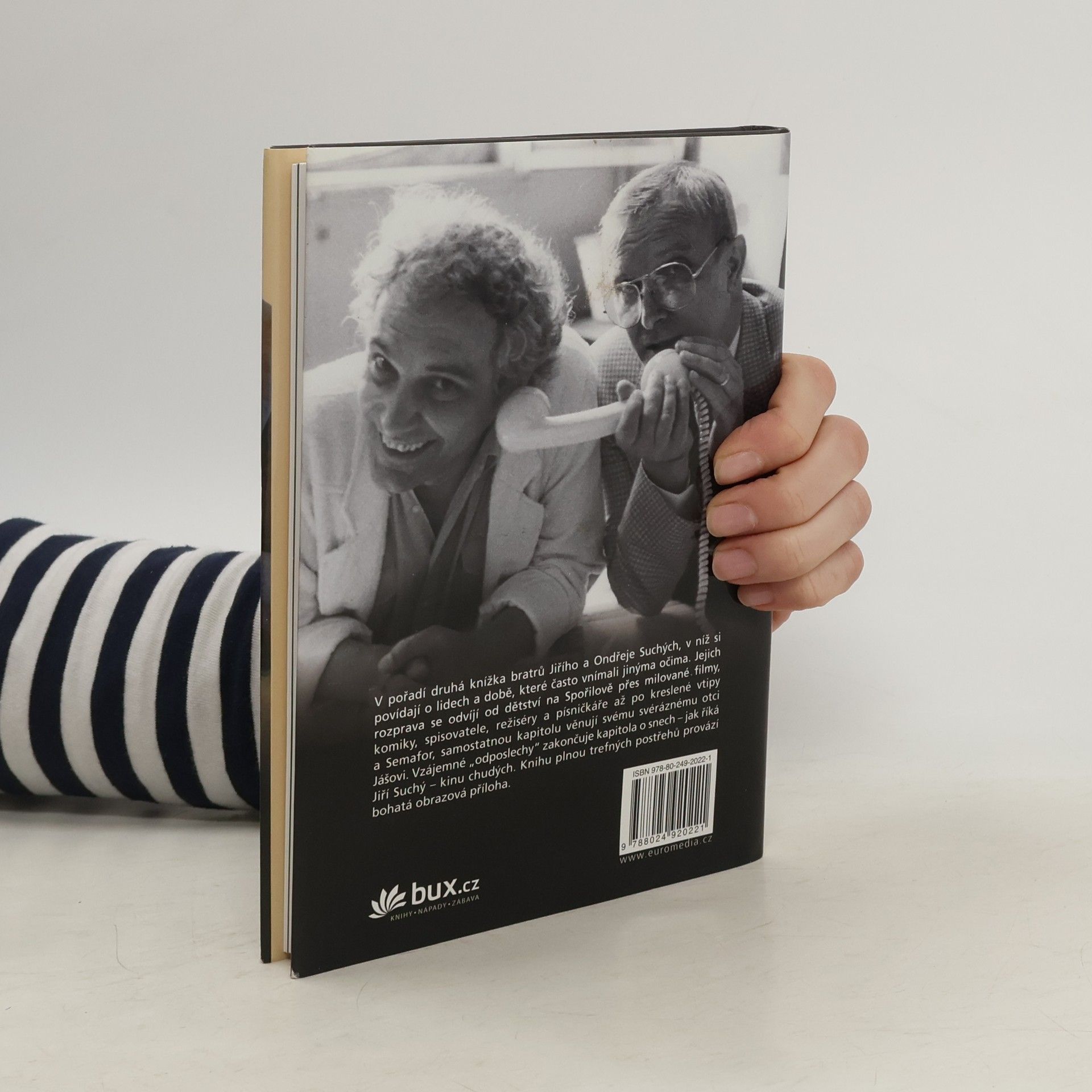 V pořadí druhá knížka bratrů Jiřího a Ondřeje Suchých, v níž jeden druhému vyprávějí leccos o lidech a době, které často vnímali jinýma očima. Jejich rozprava se odvíjí od dětství na starém Spořilově přes milované filmy, komiky, spisovatele, režiséry a písničkáře až po – jak jinak – kreslené vtipy a Semafor. Samostatná kapitola je věnována jejich svéráznému otci Jášovi, hudebníkovi, vynálezci, zlepšovateli a hlavně loutkáři. Kniha odposlechnutých odpovědí zakončuje kapitola o snech – jak říká Jiří Suchý – kinu chudých. Knihu, která překvapí trefnými postřehy a potěší vlídným humorem, doprovází bohatá obrazová příloha.