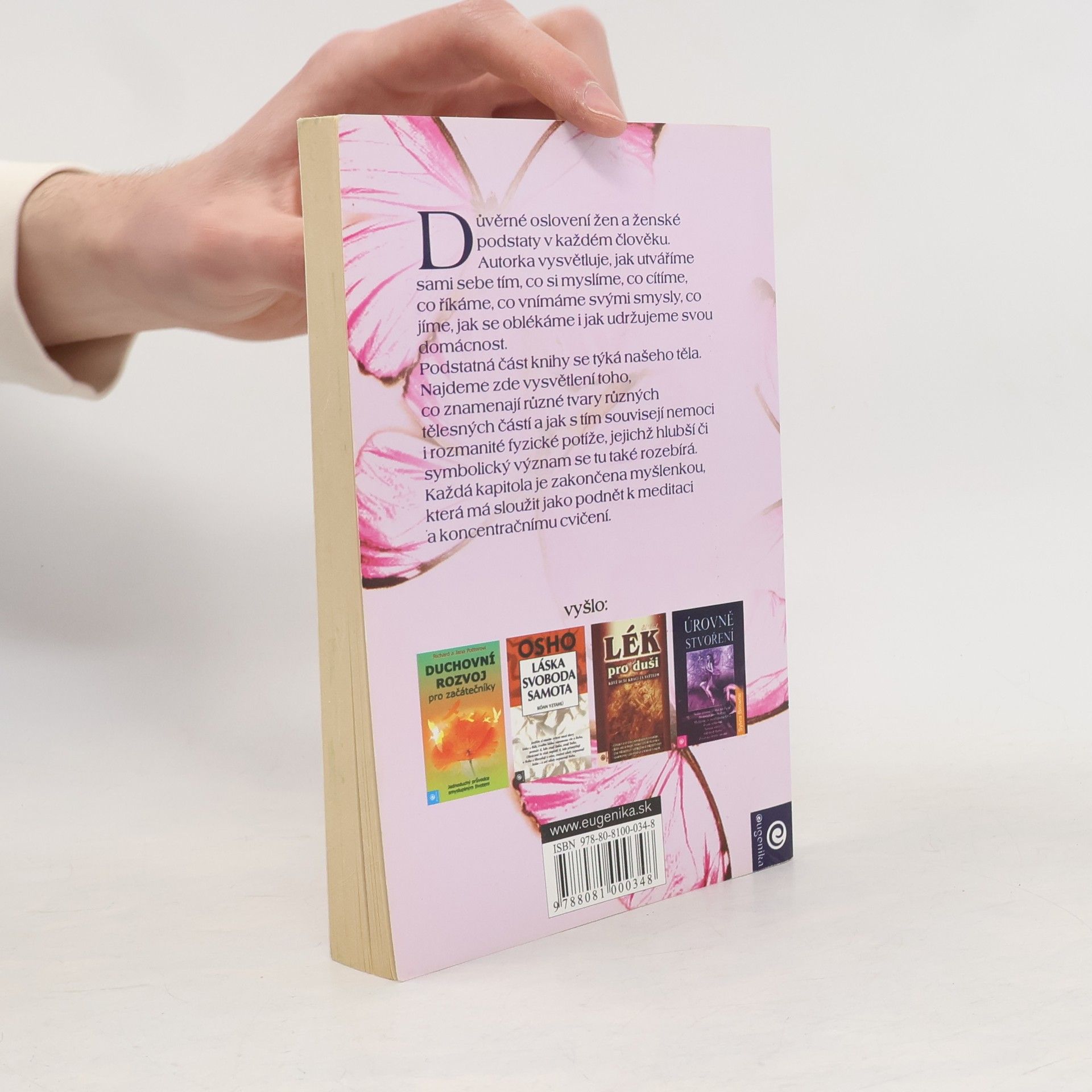 Důvěrné oslovení žen a ženské podstaty v každém člověku. Autorka vysvětluje, jak utváříme sami sebe tím, co si myslíme, co cítíme, co říkáme, co vnímáme svými smysly, co jíme, jak se oblékáme i jak udržujeme svou domácnost. Najdeme zde vysvětlení toho, co znamenají různé tvary různých tělesných částí a jak s tím souvisejí nemoci i rozmanité fyzické potíže.