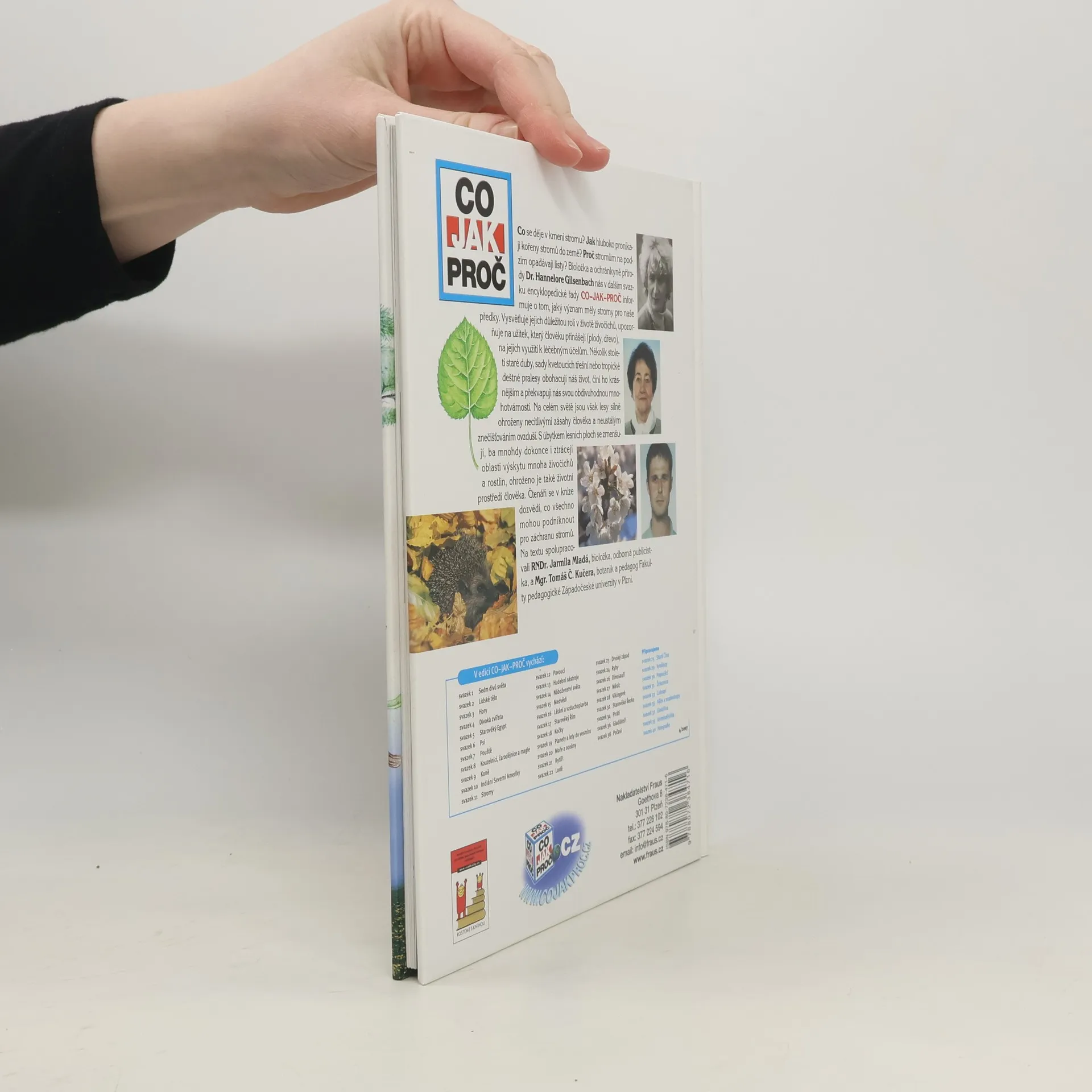 Co se děje v kmeni stromu? Jak hluboko pronikají kořeny do země? Proč listnaté stromy na podzim opadávají? Bioložka a ochránkyně přírody Dr. Hannelore Gilsenbachová vypráví o významu stromů pro naše předky. Vysvětluje, jak důležitou roli hrají stromy v životě živočichů a jaký užitek přinášejí člověku díky svým chutným plodům, nebo dřevu, které vydrží po staletí, či díky léčivým látkám. Několik století staré duby, kvetoucí třešně nebo tropické deštné pralesy – to jsou stromy, které dělají náš život krásnější a překvapují nás svou obdivuhodnou mnohotvárností. Na celém světě jsou ale lesy silně ohroženy zásahy člověka a zhoršujícím se znečištěním ovzduší. Mizí tak místo pro život mnoha živočišných druhů a ohrožen je i životní prostor člověka. Přítel přírody se v knize proto také dozví, co může udělat pro záchranu stromů. Na textu spolupracovala bioložka, redaktorka, odborná publicistka a emeritní spolupracovnice Akademie věd ČR, RNDr. Jarmila Mladá.