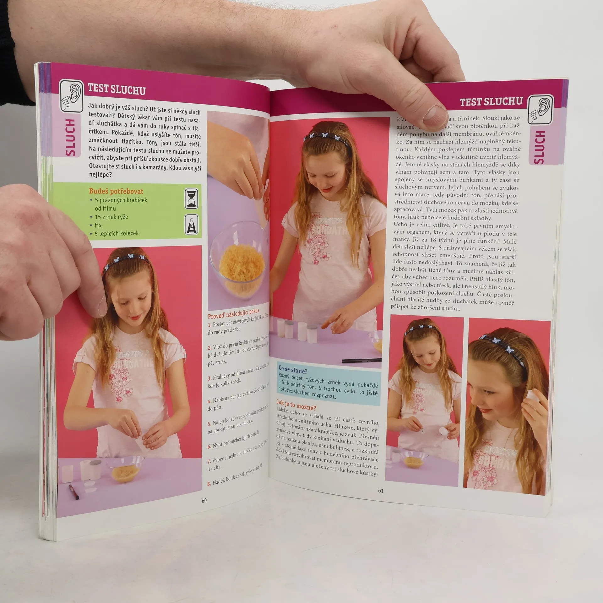 V této knize se mohou malí badatelé dozvědět mnoho informací z přírody, kuchyně a každodenního života. Patří k nim smyslové vjemy, optické klamy, různé přírodní úkazy, fyzikální zákony a chemické reakce. U jednotlivých experimentů je pomocí snadno rozlišitelných ikonek vyznačeno, který smysl je právě prověřován, dále je zde uveden stupeň obtížnosti a časová náročnost pokusu.