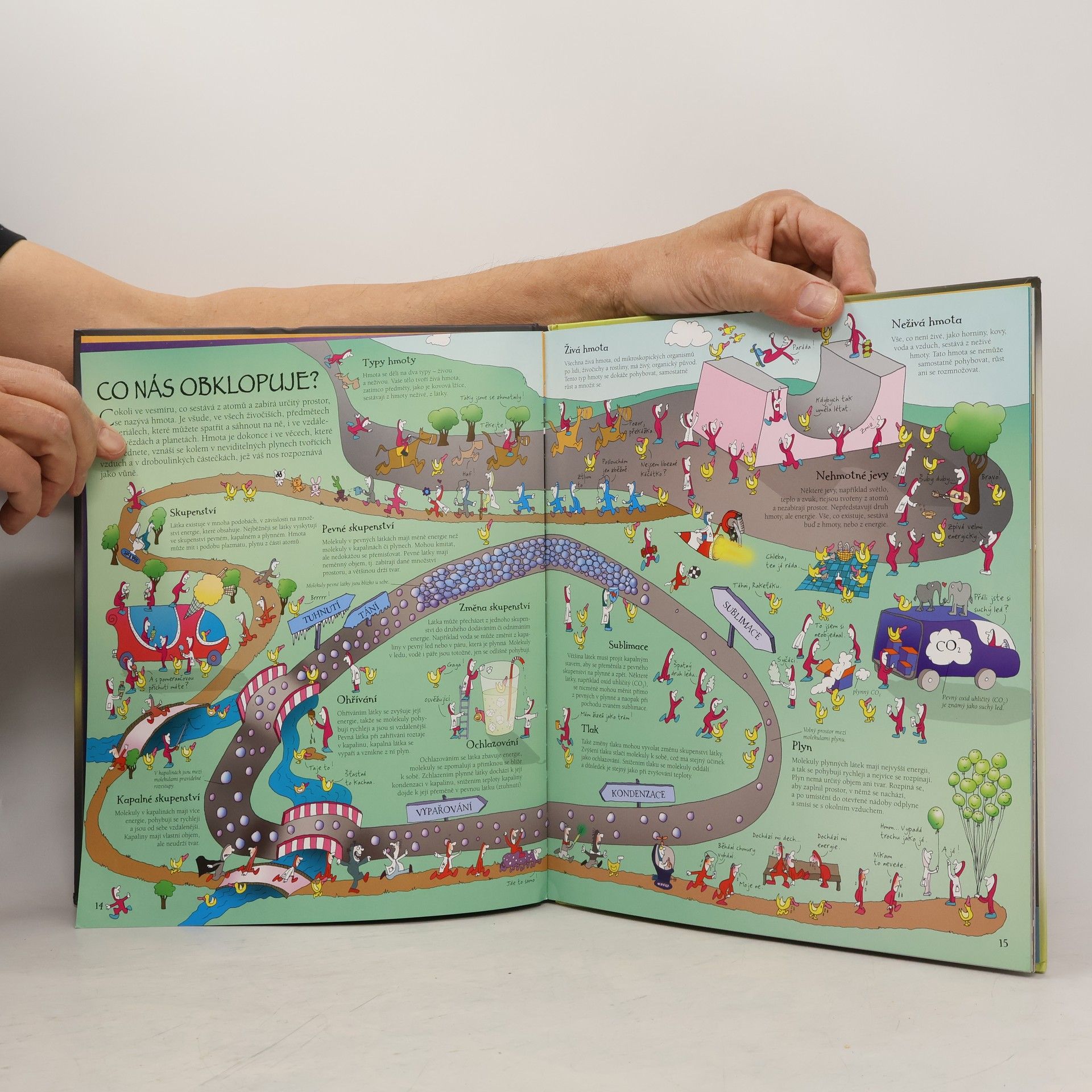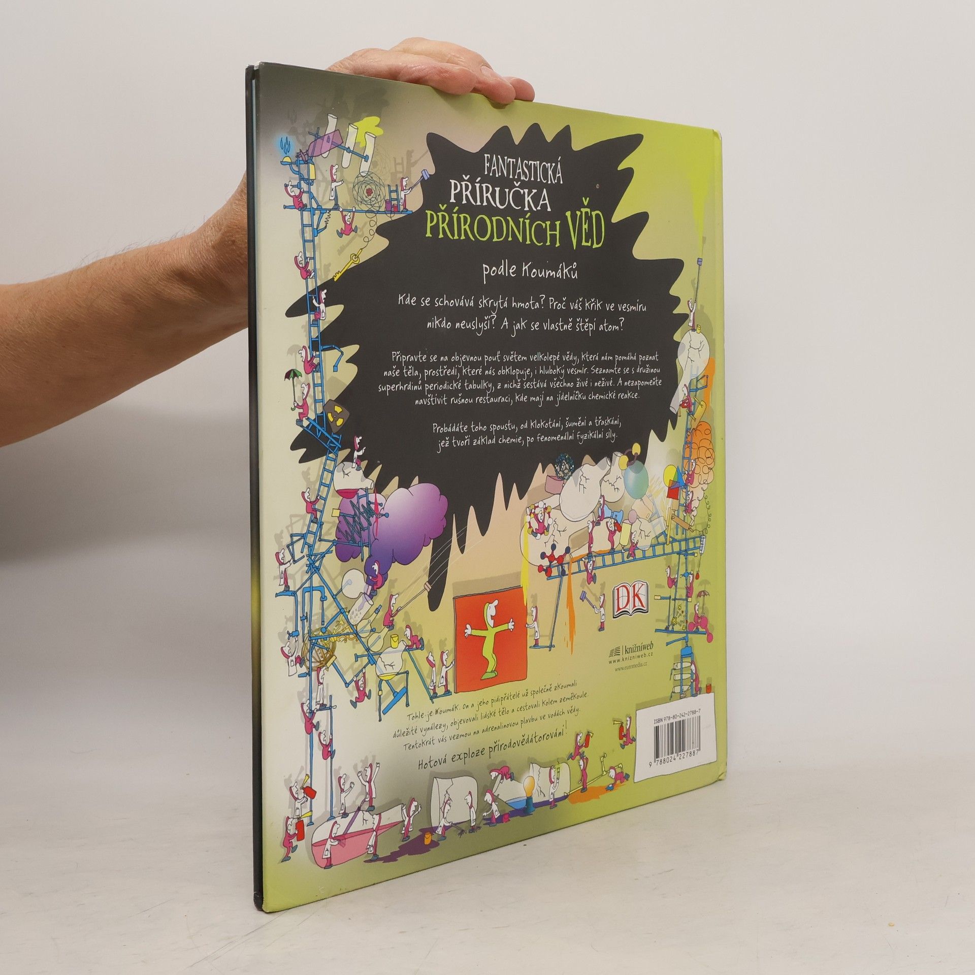 Průvodci velkoformátové, plně ilustrované publikace jsou malí človíčkové Koumáci, kteří dětské čtenáře s nadhledem a vtipem, avšak velmi informovaně provádějí základy přírodních věd fyziky, chemie, biologie, astronomie... Kniha podrobně vysvětluje, jak spolu jednotlivé vědní obory souvisejí, co je předmětem jejich zájmu, a nenásilně ukazuje dětem základy vědecké metody, která je společná všemu vědeckému zkoumání. Zábavný způsob, jak proniknout do tajů přírodních věd, i pro ty, které to ve škole nikdy nebavilo...