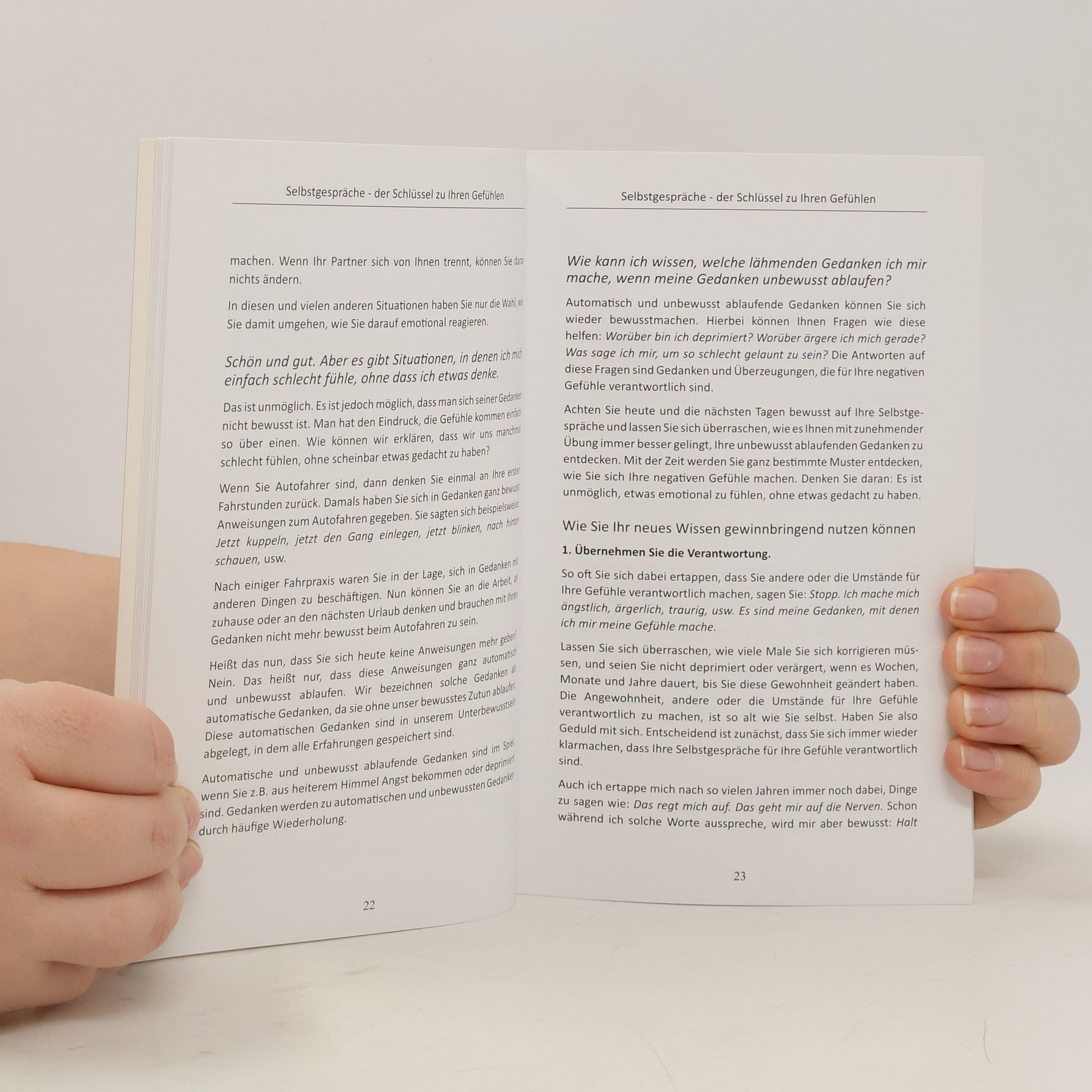 Wünschen Sie sich, entspannter durchs Leben zu gehen und Ihre Gefühle besser zu kontrollieren? Oft ärgern wir uns über Kleinigkeiten oder lassen Ängste unser Verhalten bestimmen. Dr. Doris Wolf und Dr. Rolf Merkle zeigen, wie Sie alte Verhaltensmuster erfolgreich ändern können. Sie erläutern, wie Gefühle entstehen und wie wir sie beeinflussen können. Dieser Ratgeber bietet Hilfe zur Selbsthilfe, um negative Emotionen wie Wut, Unsicherheit, Eifersucht, Einsamkeit und Ängste zu überwinden. Lernen Sie, sich selbst besser zu verstehen und Ihre Gefühle zu steuern. Mit einfachen Strategien bewältigen Sie Alltagsprobleme und bremsen negative Emotionen aus. Die Anleitung zur Selbsttherapie hilft, Ängste und beginnende Depressionen zu bekämpfen. Mentales Training und Fallbeispiele aus der kognitiven Verhaltenstherapie unterstützen Sie dabei. Blitz-Tipps für gute Laune funktionieren immer und überall. Der Schlüssel zur erfolgreichen Emotionsregulation liegt in Ihrer inneren Einstellung. Eine positive Lebenseinstellung und Selbstakzeptanz helfen, Ereignisse neu zu bewerten und mit Mut und Zuversicht zu reagieren. Lernen Sie, Einfluss auf Ihre innere Stimme und Selbstgespräche zu nehmen. Mit praktischen Übungen können Sie gezielt die Emotionen angehen, die Ihnen Probleme bereiten. Stoppen Sie das Gefühlskarussell und stärken Sie die positiven Emotionen in Ihrem Leben!
