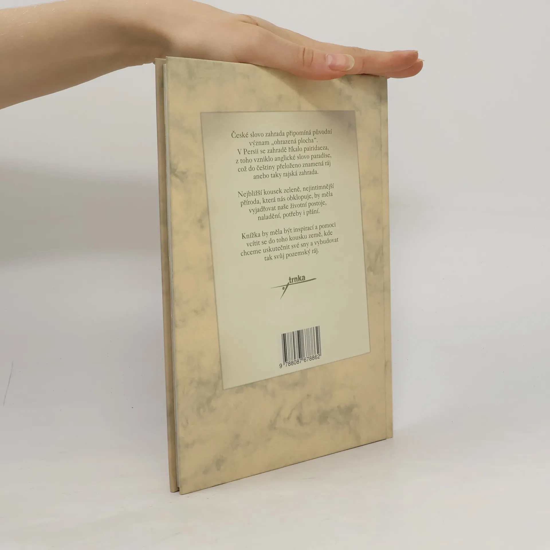 České slovo zahrada připomíná původní význam „ohrazená plocha“. V Persii se zahradě říkalo pairidaeza, z toho vzniklo anglické slovo paradise, což do češtiny přeloženo znamená ráj anebo taky rajská zahrada. Nejbližší kousek zeleně, nejintimnější příroda, která nás obklopuje, by měla vyjadřovat naše životní postoje, naladění, potřeby i přání. Knížka by měla být inspirací a pomoci vcítit se do toho kousku země, kde chceme uskutečnit své sny a vybudovat tak svůj pozemský ráj.