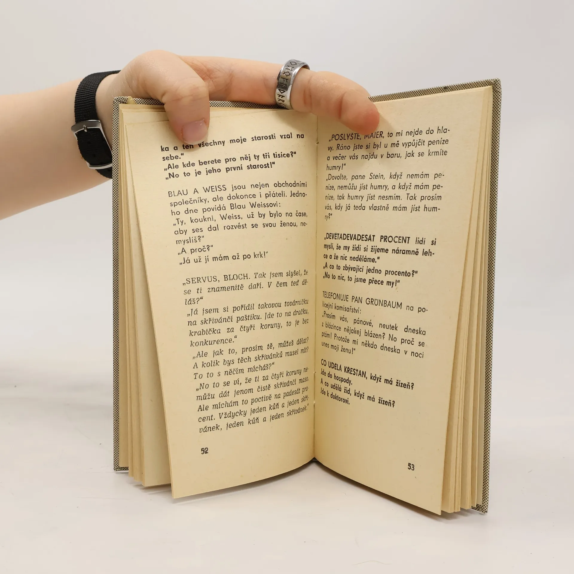 Židovské anekdoty dělené na tři části: Za císaře pána, Mezi dvěma válkami, A z našich časů.